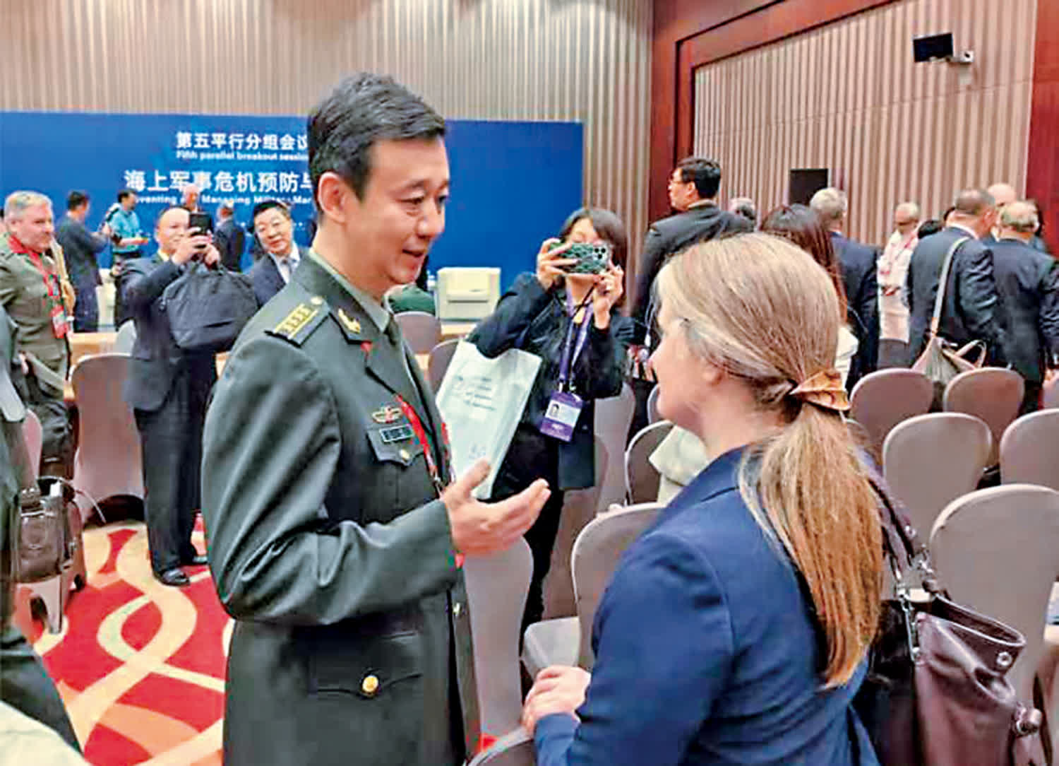 花絮:中美軍方官員簡短交談、贈送禮物