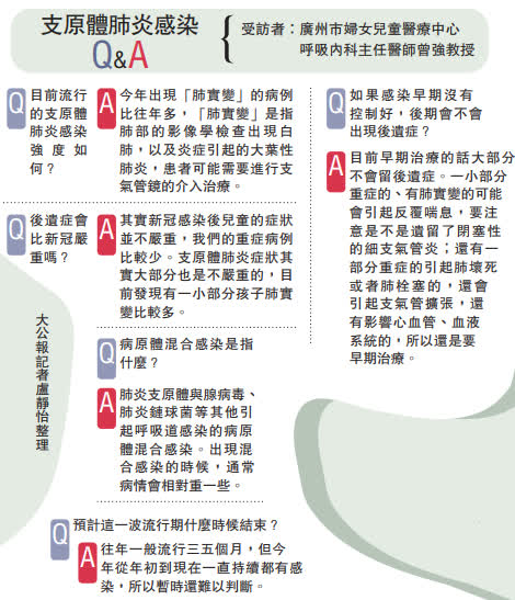 「今年6月、7月開始,支原體感染的孩子就很多了。九月數據有所下降,但10月份以來又開始增多。」廣州市婦女兒童醫療中心呼吸內科主任醫師曾強教授告訴記者:「往年,一個季度後就呈下降趨勢,而今年卻持續了5個多月。」