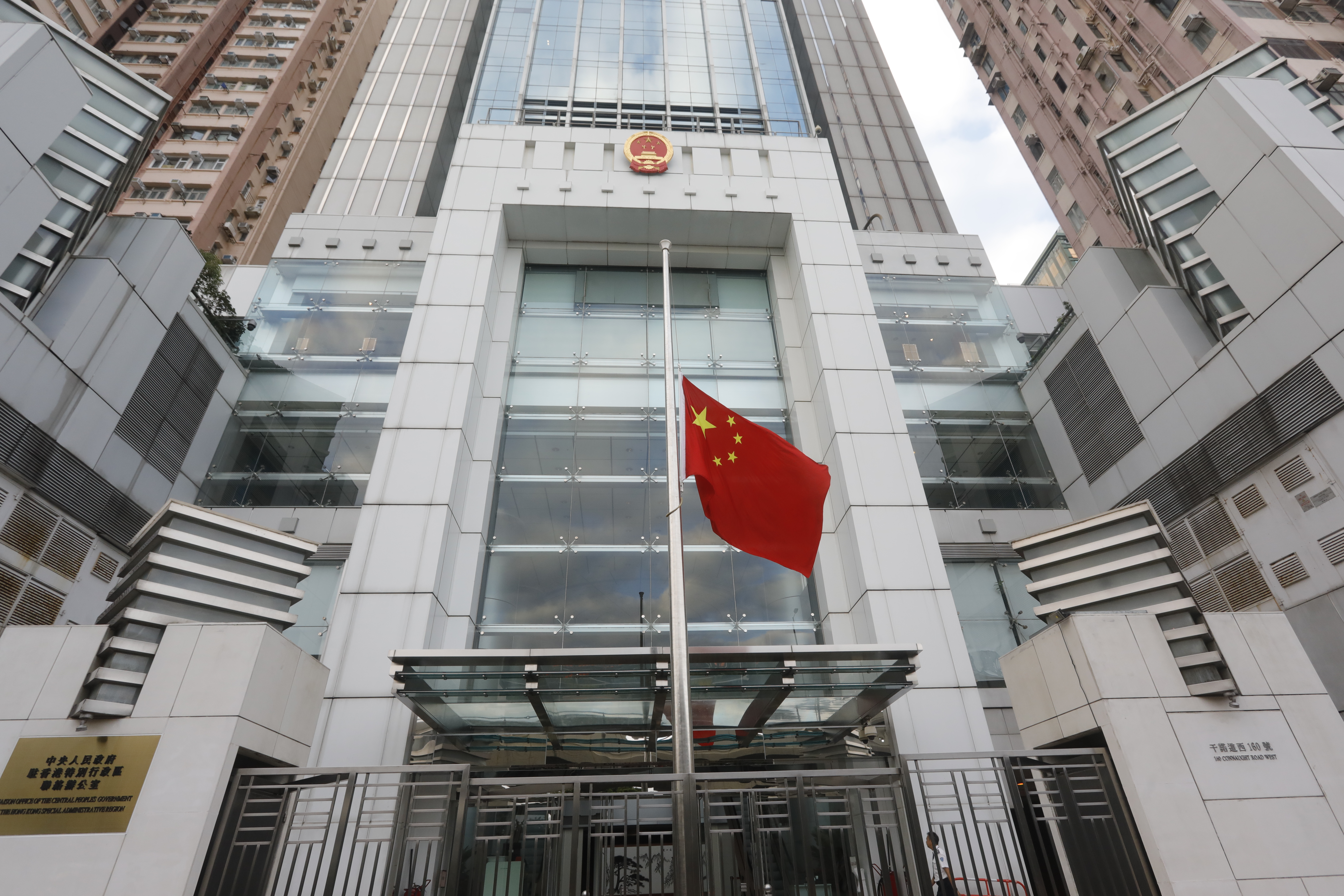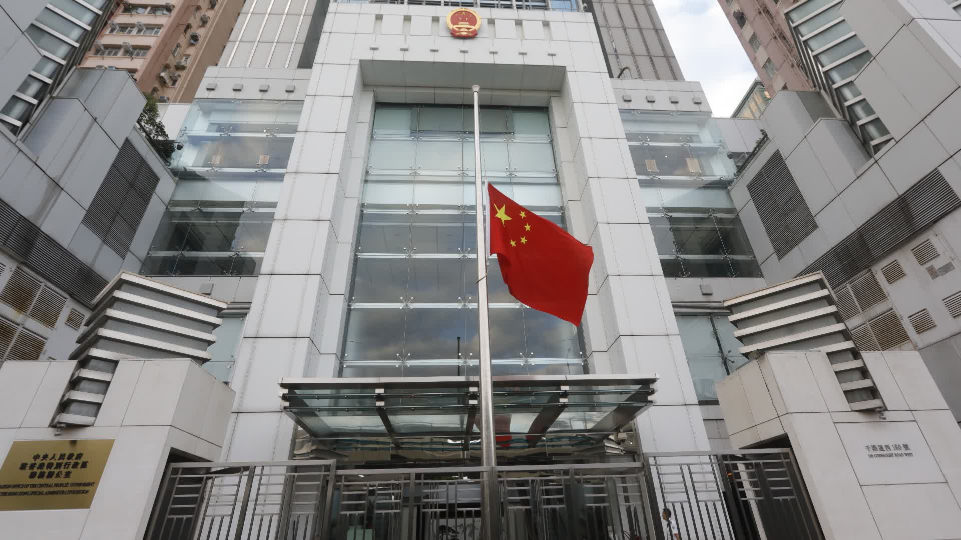 為悼念李克強,中央人民政府駐香港特別行政區聯絡辦公室早上下半旗誌哀。