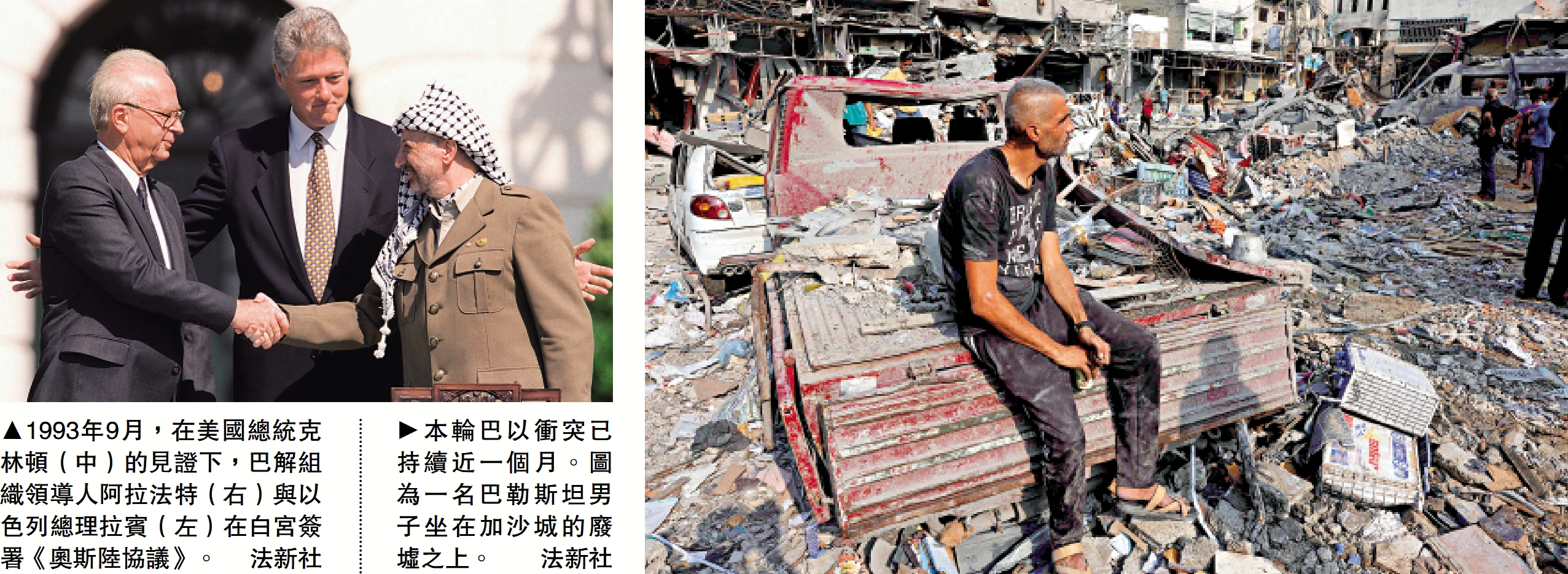 大公報綜合半島電視台、新華社報道:為和平解決巴以問題,巴勒斯坦解放組織與以色列分別於1993年和1995年簽署兩階段的《奧斯陸協議》,巴勒斯坦民族權力機構在不同程度上管理由165塊飛地組成的約旦河西岸A區和B區以及加沙地帶。但隨着以色列持續非法佔領巴勒斯坦領土,該協議本應開啟的和平進程已胎死腹中,巴勒斯坦人民離獨立建國的目標日漸遙遠。