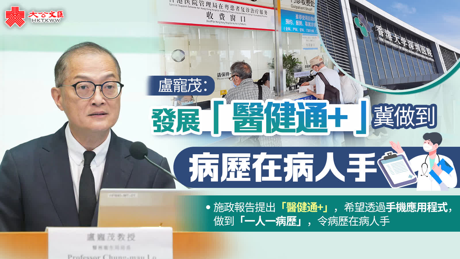 盧寵茂表示,現時每次需運送病歷到港大深圳醫院費時失事,施政報告提出「醫健通+」,希望透過手機應用程式,做到「一人一病歷」,令病歷在病人手,日後病人到外地求醫,可以將病歷帶到當地醫院。