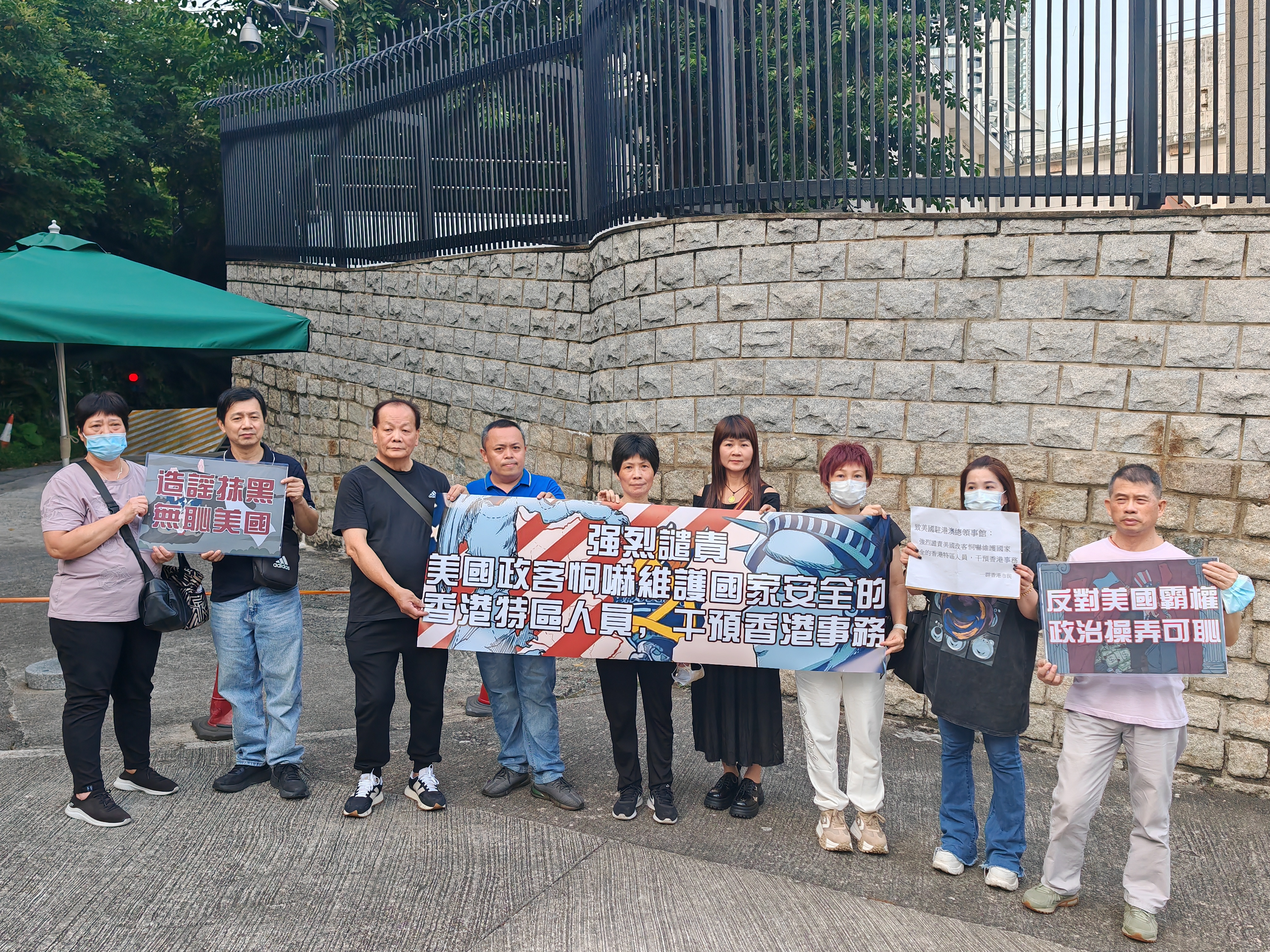 大公文匯全媒體報道,有美國議員提出所謂「法案」,要求檢視將律政司司長、香港特區維護國家安全委員會秘書長、警務處處長,以及多名法官和檢控官列入所謂「制裁」名單。一群香港市民今日(3日)到美國駐港總領事館外,抗議美國政客恫嚇維護國家安全的香港特區人員、干預香港事務。