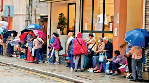 領到飯總是幸運的。另一位79歲婆婆從小西灣趕來,遲了少許領不到,只好失望地轉去其他愛心餐廳排隊。婆婆不願透露姓名,只說丈夫已離世,現時借住在親友家,因所住的社區不見有飯派,才會老遠走過來。她一年多前開始四處領飯盒,每星期都會來排隊,「經濟不好,政府每月給的津貼夠用,但醫療券不夠看醫生。我要靠人,可慳則慳!」