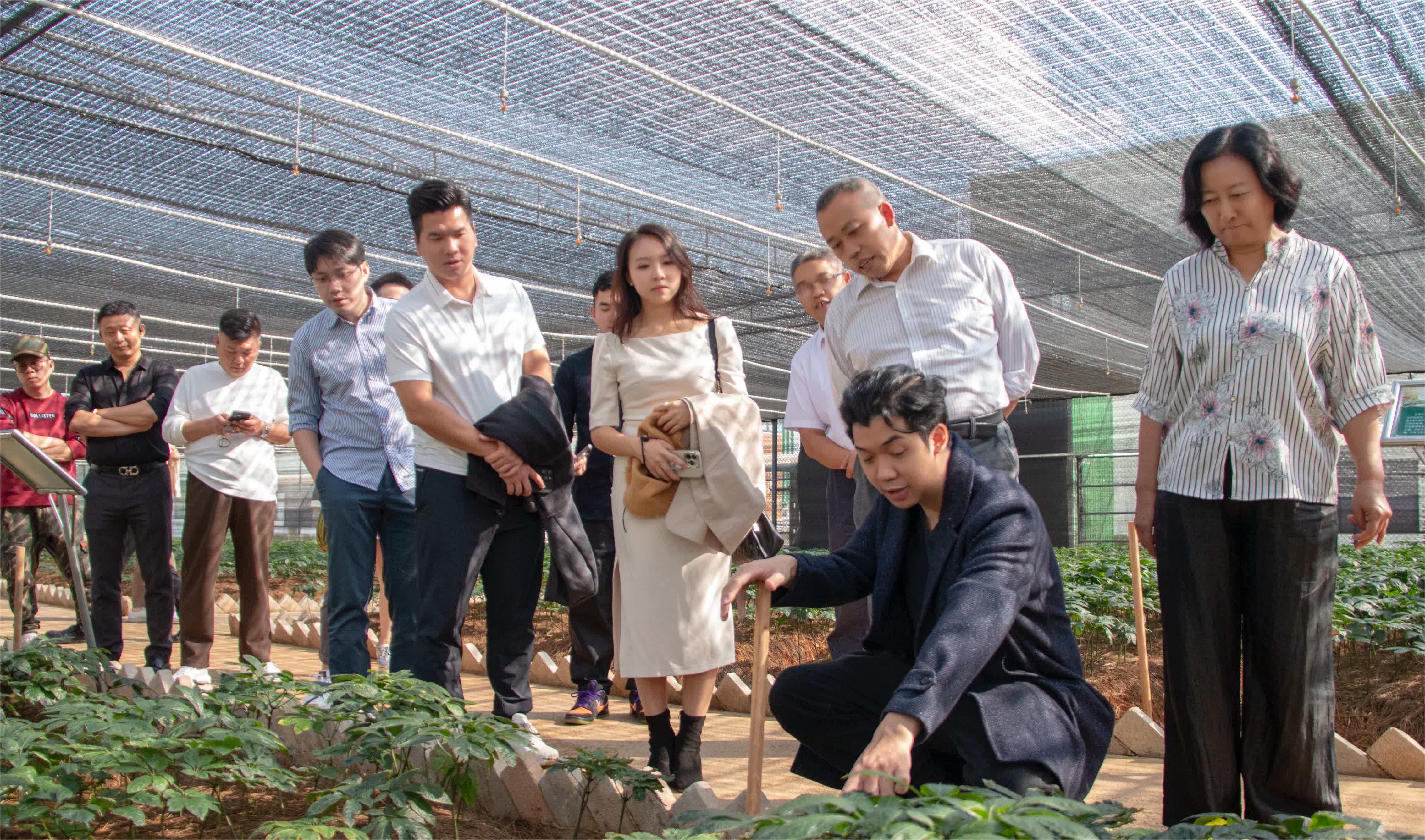 第四天,團員前往硯山縣,在松南農業開發有限公司考察現代農業產業項目。文山是農業大州,自然資源豐富、當前正全力打造粵港澳大灣區「菜籃子」,基地堅持品質興農、綠色興農、品牌興農,走出一條產業興旺、農民致富的新路子。種植基地裡的蔬菜,下午採摘,晚上出貨,新鮮抵達粵港澳大灣區,實現了朝發夕至的「雲品出滇、直奔大灣」景象。