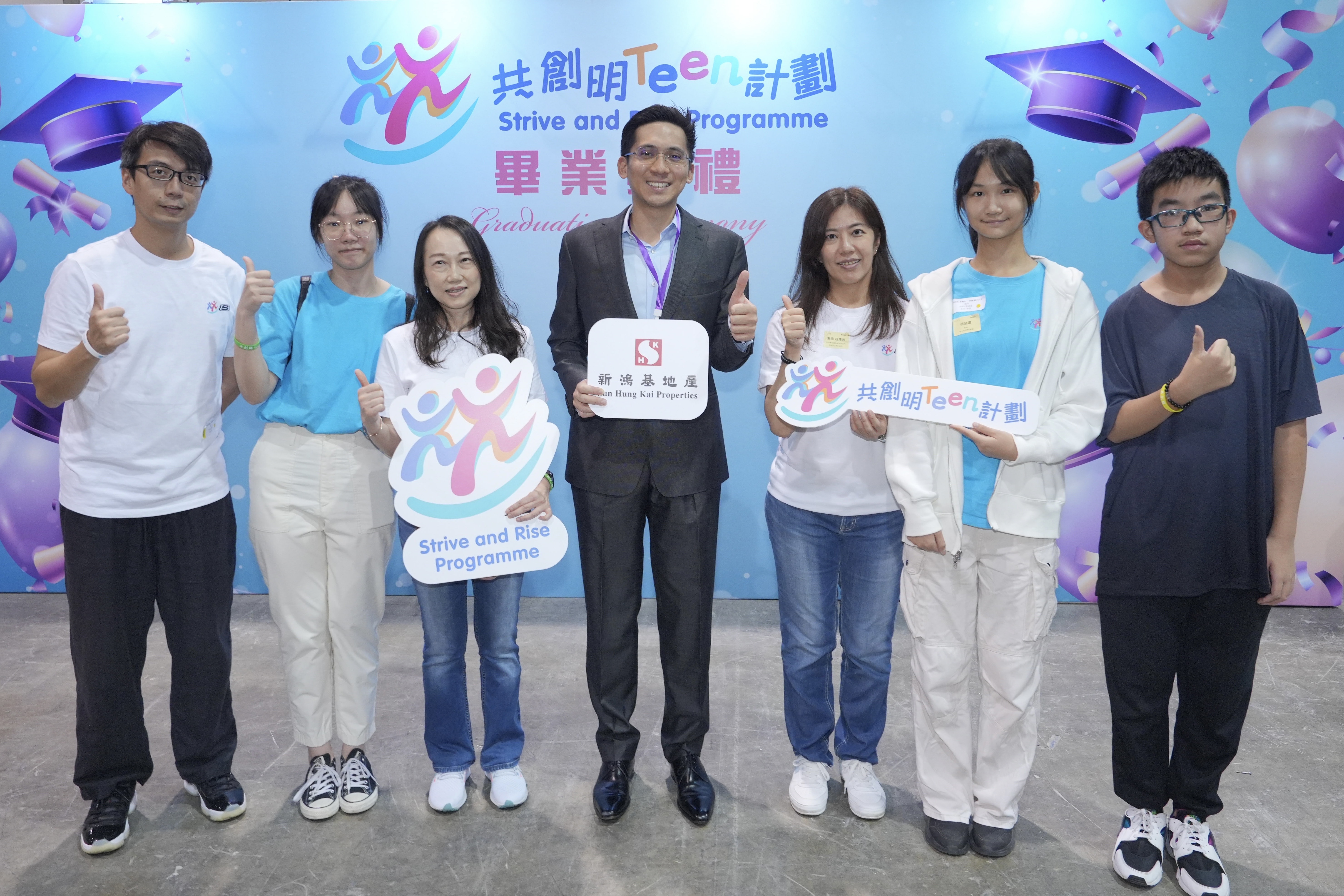 大公文匯全媒體報道,「共創明『Teen』計劃」今天(4日)舉行畢業典禮,首批參與並積極支持計劃的新鴻基地產,由執行董事郭基泓出席典禮。郭基泓表示,新地作為計劃的策略夥伴之一,很高興看到第一期計劃圓滿舉行,集團更有12名友師獲得獎項,令人欣慰。他說,眾多學員和友師在經過一年的相處後,互相都有所學習和得益,並經歷了不少難忘的回憶。