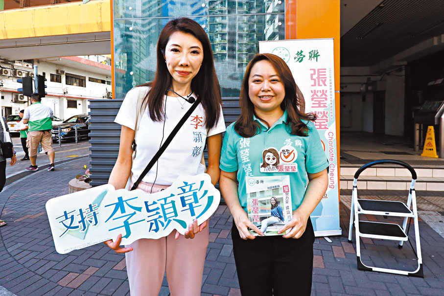 深水埗東參選人張瑩瑩和李頴彰,就在設立街站時互相打招呼,並討論深水埗當區的民生議題。李頴彰指出,現時選區較以前更大,各參選人都需要花更多心機加強了解當區的民生情況,大家過去服務的小區不同,對區內事務亦各有所長,因此在競爭的同時,也是互相學習的對象,相信大家不論是否當選,都會繼續做好地區服務,共同合作,為社區繼續出一分力。