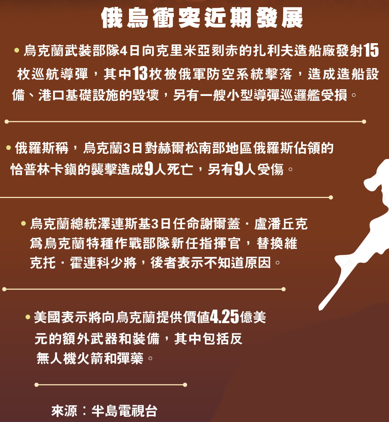 俄烏戰事已進入第21個月,基輔曾表示,他們希望奪回包括克里米亞半島在內的所有「領土」,勢必要驅逐俄軍,烏方不會停戰。
