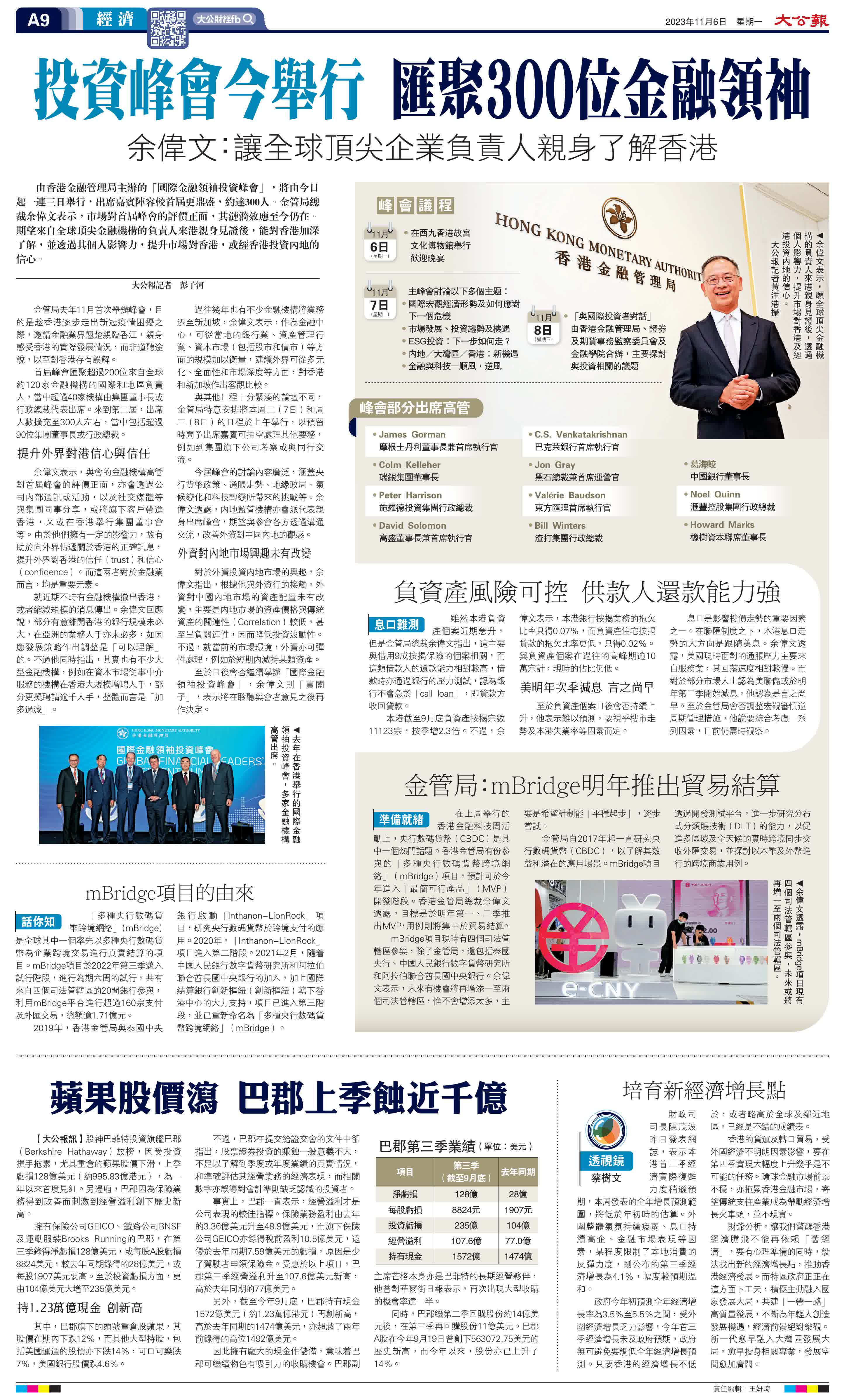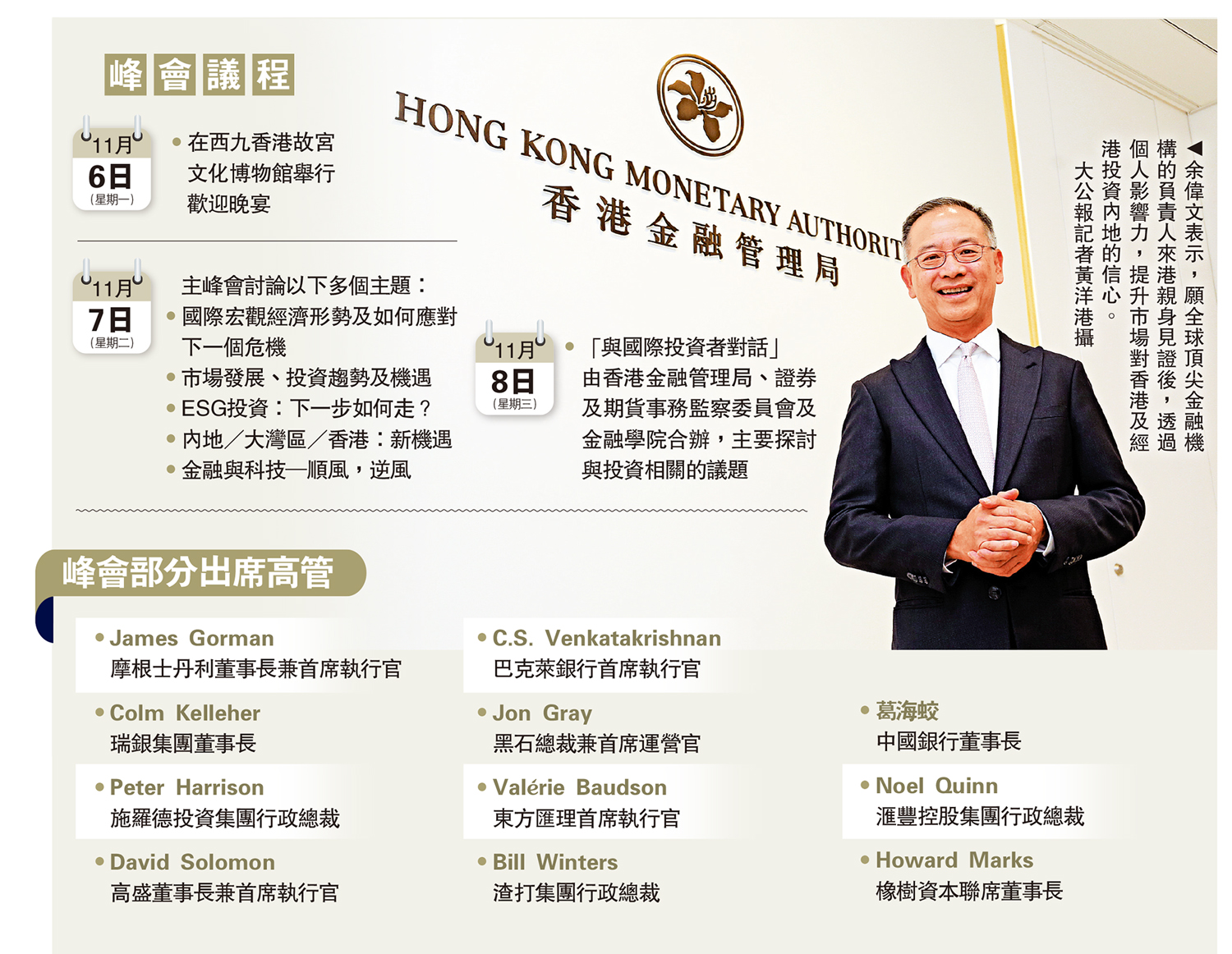金管局去年11月首次舉辦峰會,目的是趁香港逐步走出新冠疫情困擾之際,邀請金融業界翹楚親臨香江,親身感受香港的實際發展情況,而非道聽途說,以至對香港存有誤解。