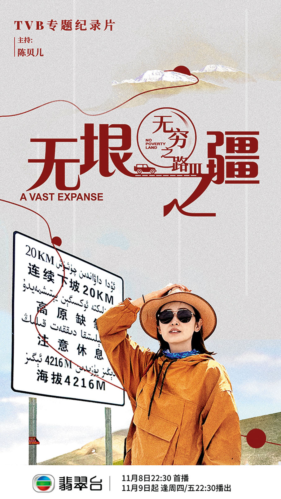(香港文匯報 記者 倪夢璟、達里)由陳貝兒擔任主持的TVB紀錄片《無窮之路III:無垠之疆》即將開播,「自駕跨越14,000公里的探險旅程」成為今季節目最大看點之一,由新疆烏魯木齊起步,觀眾將看到以往難以在電視節目中見到的西域隱世秘景。