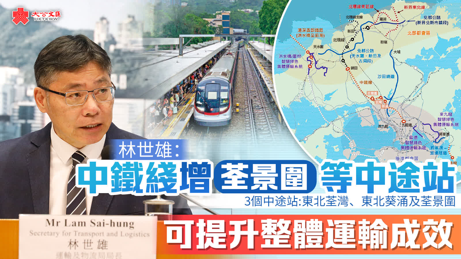 大公文匯全媒體報道,新一份施政報告提出三鐵三路優化方案,包括在中鐵綫增加東北荃灣、東北葵涌及荃景圍3個中途站。運輸及物流局局長林世雄今日(6日)於電台節目中表示,早前經公眾諮詢,當局認為在葵涌、葵盛等地區增加站點,可以令整體運輸表現及成效更好,亦相信增加中途站與通車時間沒有必然關係。