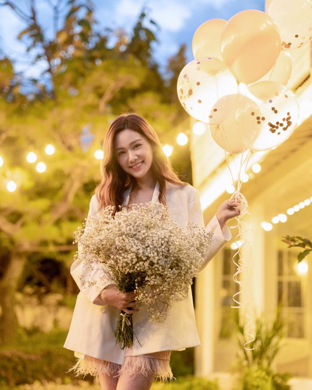 相中準新娘艷光四射狀態大勇,靚湯穿上粉紅色連身短裙搭配白色外套,大騷一對修長美腿,待嫁的她每刻都展露幸福笑容。她在帖文中寫道:「非常夢幻的首爾Bachelorette Shooting!第一次在韓國化妝室化妝,遇到韓星。拍攝有點冷,但很順利。Thank you guys. I love youuu!還有很多照片,想看嗎?」