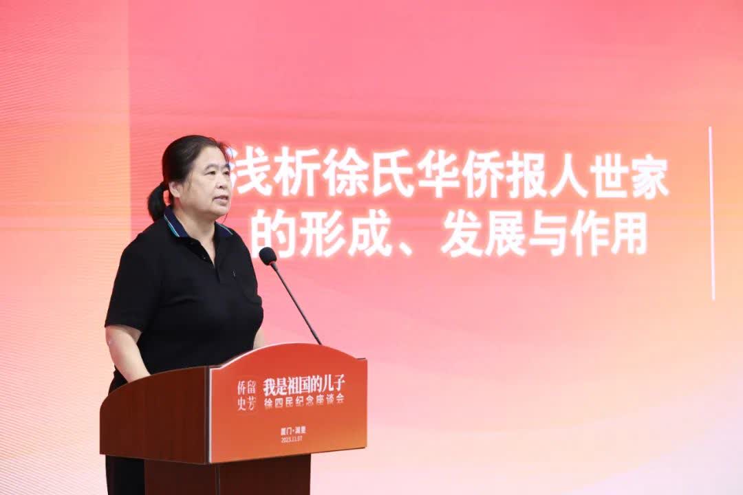 閩僑智庫閩江學院研究中心研究員、福建省華僑歷史學會理事、高級記者劉琳在《淺析徐氏華僑報人世家的形成、發展與作用》的主旨發言中梳理了徐四民報人世家的歷史,並對其所體現的愛國主義精神進行了精鍊總結,「徐氏華僑報人世家歷史,也是百餘年海內外先進中國人執着探索民族救亡圖存、救國救民道路並最終選擇跟着中國共產黨為民族復興奮鬥的歷史,展現了中國人民在民族復興的道路上一次次抗爭、一次次求索,自強不息的頑強意志。」