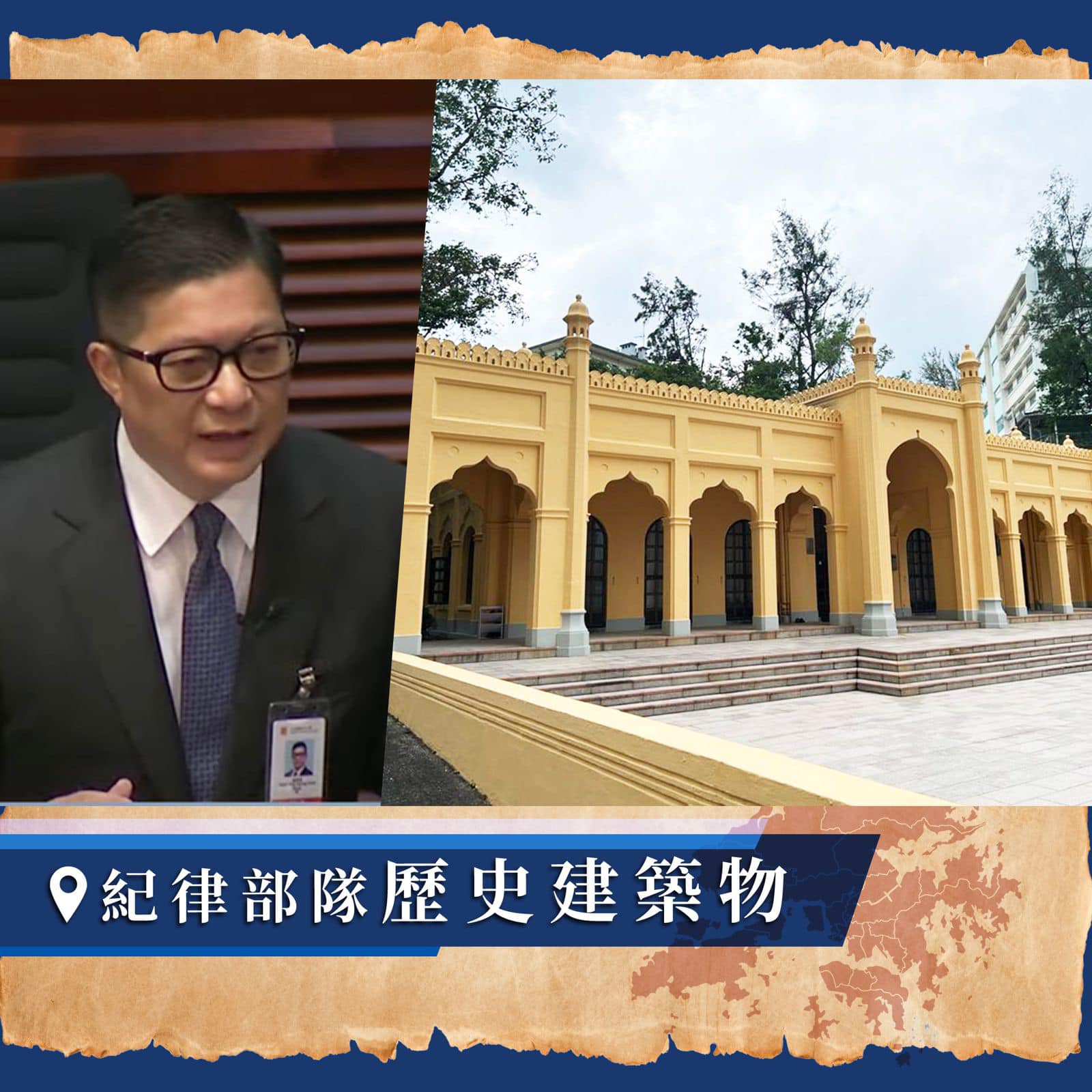 鄧炳強提到,紀律部隊部門當中有32處建築已獲得古物古蹟辦事處評級,包括被評為一級歷史建築的懲教署赤柱回教廟,以及入境處的香港公園舊域多利軍營羅連信樓。有好多建築都有非常獨特過去,記錄香港紀律部隊史,希望努力將文化傳承下去,說好香港故事。