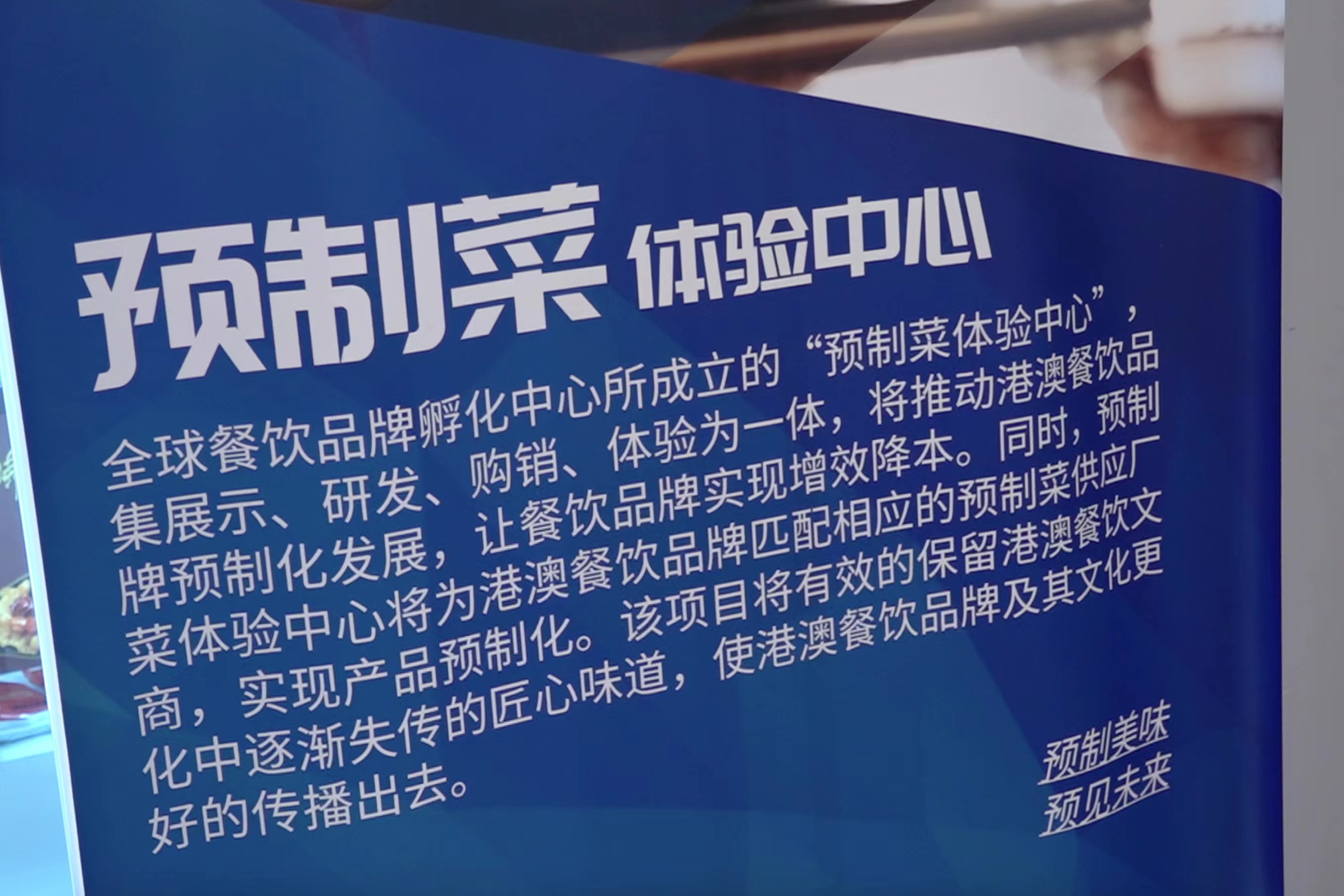 近年預製菜行業興起,餐廳僱主僅需將半成品做好,簡化出餐流程和管理工作,令餐飲行業有新的發展方向。孵化中心於2021年正式設有預製菜廚房,餐廳經營者可以在此即時對預製菜品進行加工,再經品嘗後決定是否引入餐廳。藍光表示,中心十分重視食品安全,合作的廠家必然會經過國家認證且具備相應牌照,其中大部分合作廠家具有出口資質。