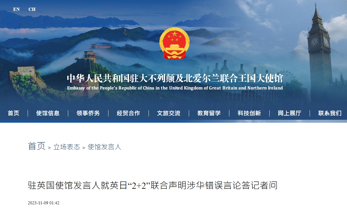 關鍵詞:駐英使館英日2+2俄烏局勢