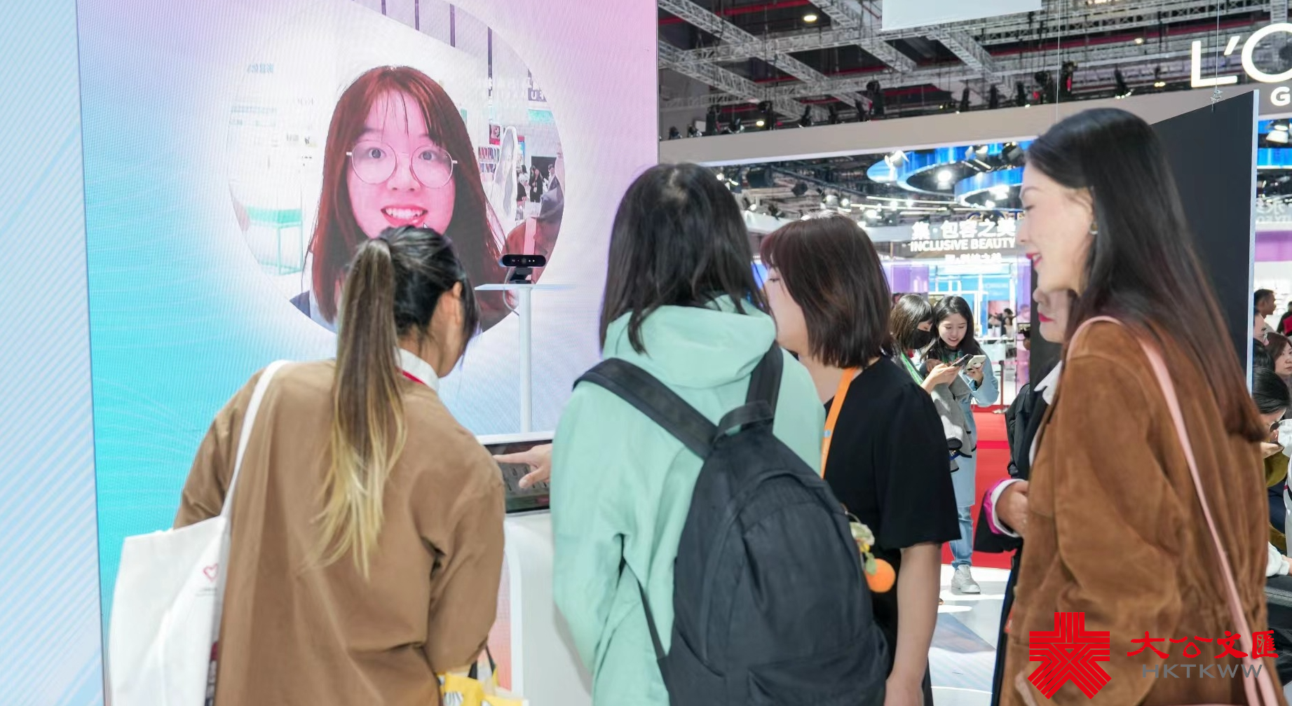 用手機攝像頭記錄面部皮膚狀態,只需短短几秒,肌膚的乾燥度、光澤度等指標數據即刻出現在屏幕上,皮膚的專屬年齡一鍵生成……在進博會消費品展區,眾多美妝「黑科技」新品讓進博觀眾蜂擁而至,搶先體驗。在花王展台的一台美膚人機互動裝置前,體驗者一分鐘就可以測算皮膚年齡。原來,這台機器的「AI拍照測膚」功能可以幫助消費者選用更科學、便捷的護膚方式。花王展台的工作人員表示:「這款產品結合了AI技術,通過沉浸式AR體驗,讓消費者可以了解自己的肌膚情況,來選擇合適的護理方式並獲取專業的建議。這也是我們最新開發的產品。為了方便更多中國消費者使用,還特意開發了小程序方式,讓美妝日化也可以變得更有趣味性。」