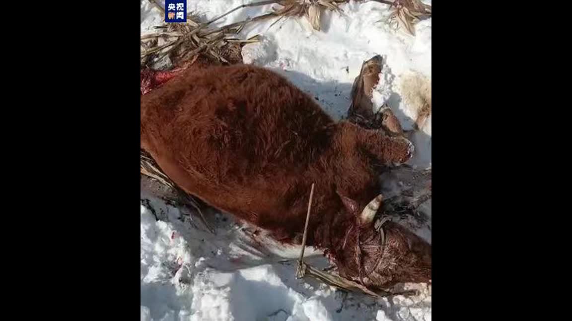 近日,哈爾濱市依蘭縣達連河鎮新勝村一村民稱在山上遇到了「老虎」,並發現有一頭牛被咬死。該村民拍攝的照片顯示,牛的兩條後腿已經被撕扯掉,旁邊雪地裏還有疑似虎爪印的動物足跡。得知情況後,當地立即發布緊急通知,禁止人員入山,避免與大型猛獸相遇。林草部門也第一時間聯合專家通過足跡形狀、大小,以及覓食習性等因素綜合分析,確認該野生動物為東北虎。