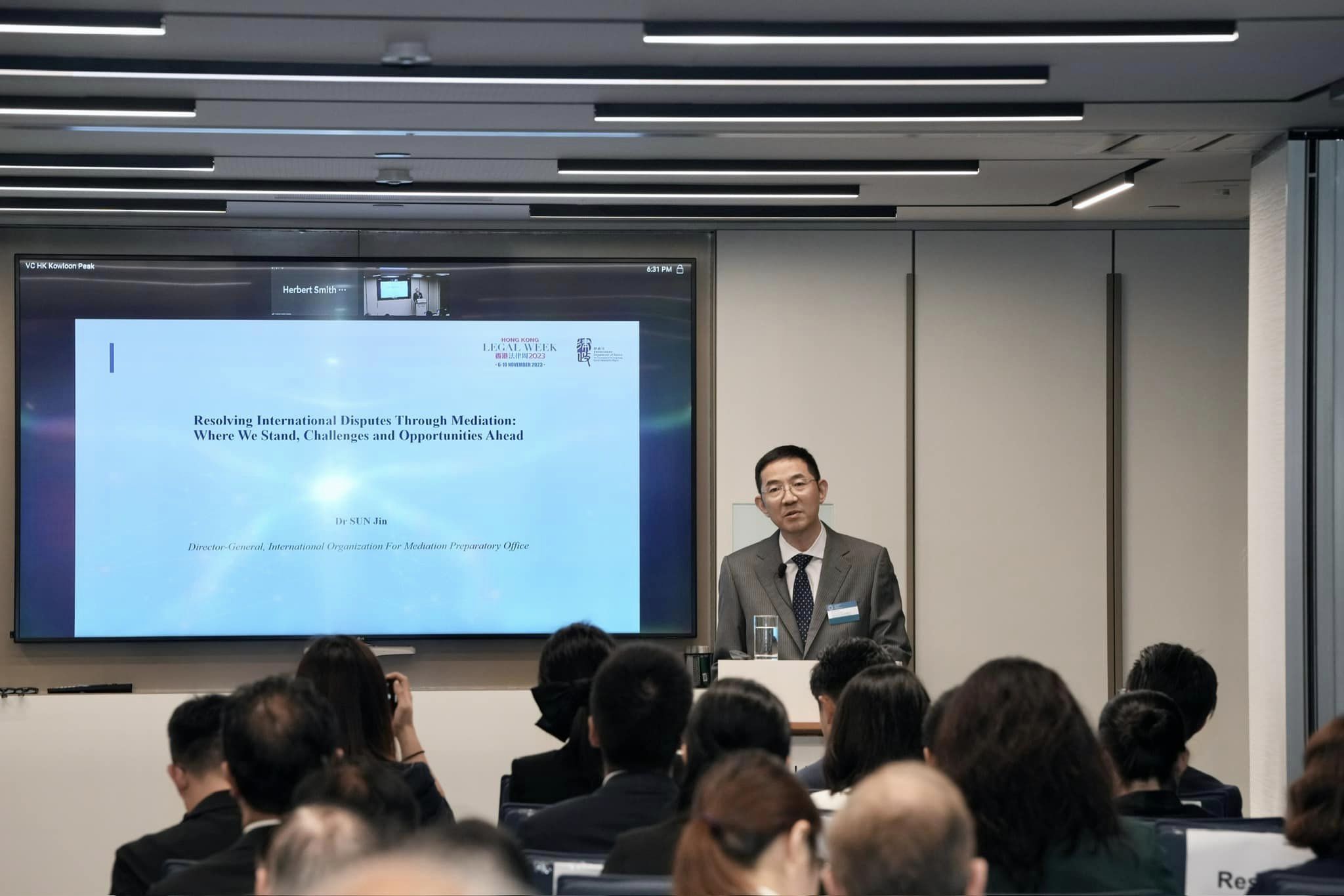 林定國提到,今次主講嘉賓是國際調解院籌備辦公室主任孫勁,孫主任藉此向近200位線上線下法律界與會者,介紹國際調解院的定位和角色,又講解他對現時國際調解的法律機制、實踐和未來機遇的看法。他表示,作為首個政府間國際調解組織,國際調解院將為國際社會的和平穩步發展作出巨大貢獻。律政司會把握這個歷史性機會,全力支持籌備辦公室在香港的工作,同時進一步鞏固亞太區國際法律和解決爭議中心的地位,在日趨複雜的國際環境下,守穩香港法治這面金漆招牌。