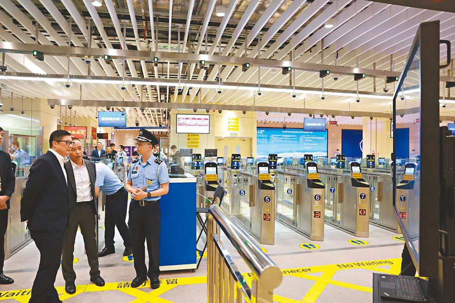 談到港深兩地政府正研究在新皇崗口岸實施「合作查驗、一次放行」。鄧炳強表示,有關做法讓出入境的人士既可選用傳統過關方法,也可在事先分別向兩地的相關部門登記後,選用更便捷的邊境查驗模式。