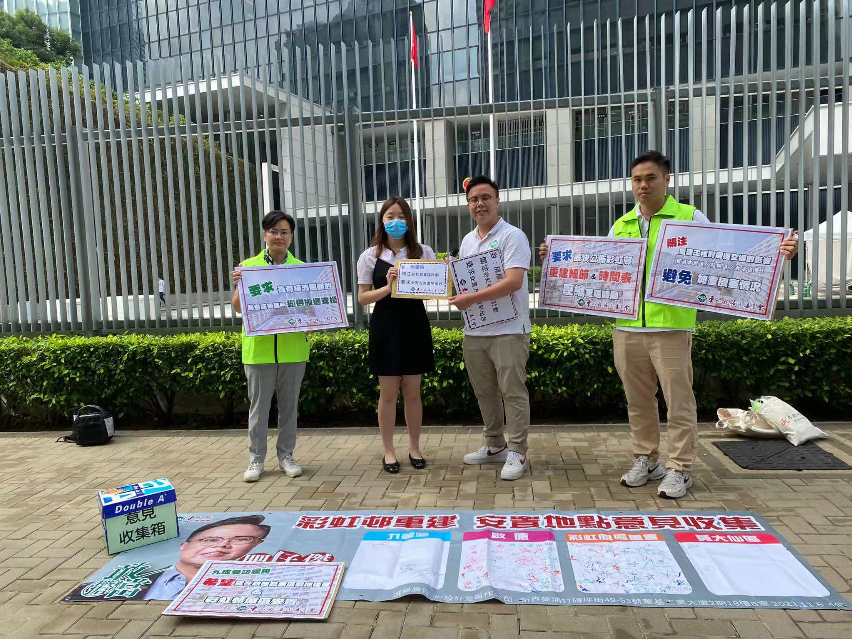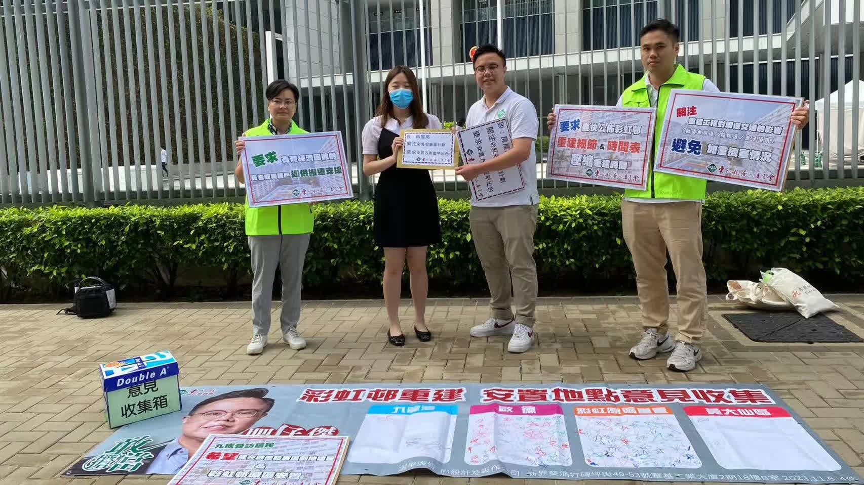 大公文匯全媒體報道,有報道指,房委會擬於12月公布重建有60年樓齡的彩虹邨,計劃預料需時20年完成。2023年區議會選舉黃大仙東直選界別候選人莫嘉傑得悉後,夥東九龍居民委員會一連五日於彩虹邨主要出入口舉行街站,收集居民對計劃安置地點的意見。