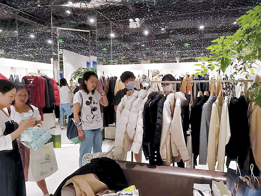 記者日前在福田口岸附近的中高檔消費場所購物公園(CoCo Park)看到,三位四五十歲的女性港人結伴前來逛商場,到一家名為GLORIA商店挑選秋冬季衣服。店員介紹,「雙十一」期間打八五折,一件1,000元的衣服較平時優惠了150元。其中一位盧姓女士購買了一件毛紡秋衣,八五折後價格1,700元,感覺挺優惠。在無印良品(MUJI),服裝買滿680元減68元,相當於九折優惠,並且還可以疊加其他優惠。