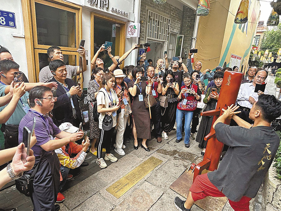10日上午10時,參訪團剛在永慶坊牌坊旁下車,便直入一條長長的青石板路小巷。左邊是一家廣彩非遺傳承人工作室,右邊斜對面又是一家裝修古樸的廣式飲品店。走在石板路上,轉身即可進入非遺傳承室,欣賞精緻的廣彩文創花盤,中華微視董事長宋體金說,這種感覺讓人非常受用。「城市更新改造,不一定都需要很寬的大馬路,也許一條小而悠長的小巷子,反而更彰顯城市特色。」宋體金說,永慶坊復原工作做得非常出色,「特別是老祖宗傳下來的東西,和我們的日常生活結合在一起,未來絕對有很大的市場。」