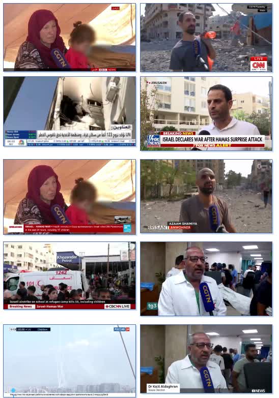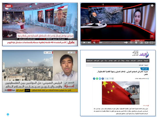 總台CGTN多位阿拉伯語記者就巴以衝突話題,同沙特東方電視台、英國BBC、英國天空新聞台、俄羅斯衛星通訊社阿語廣播、沙特阿拉伯alhadath電視台、約旦國王電視台、埃及開羅新聞台、阿爾及利亞《祖國報》、摩洛哥MD1TV電視台、敘利亞國家電視台、伊朗阿拉伯電台等17家國際主流媒體、中東主流媒體連線或接受採訪共計40次。