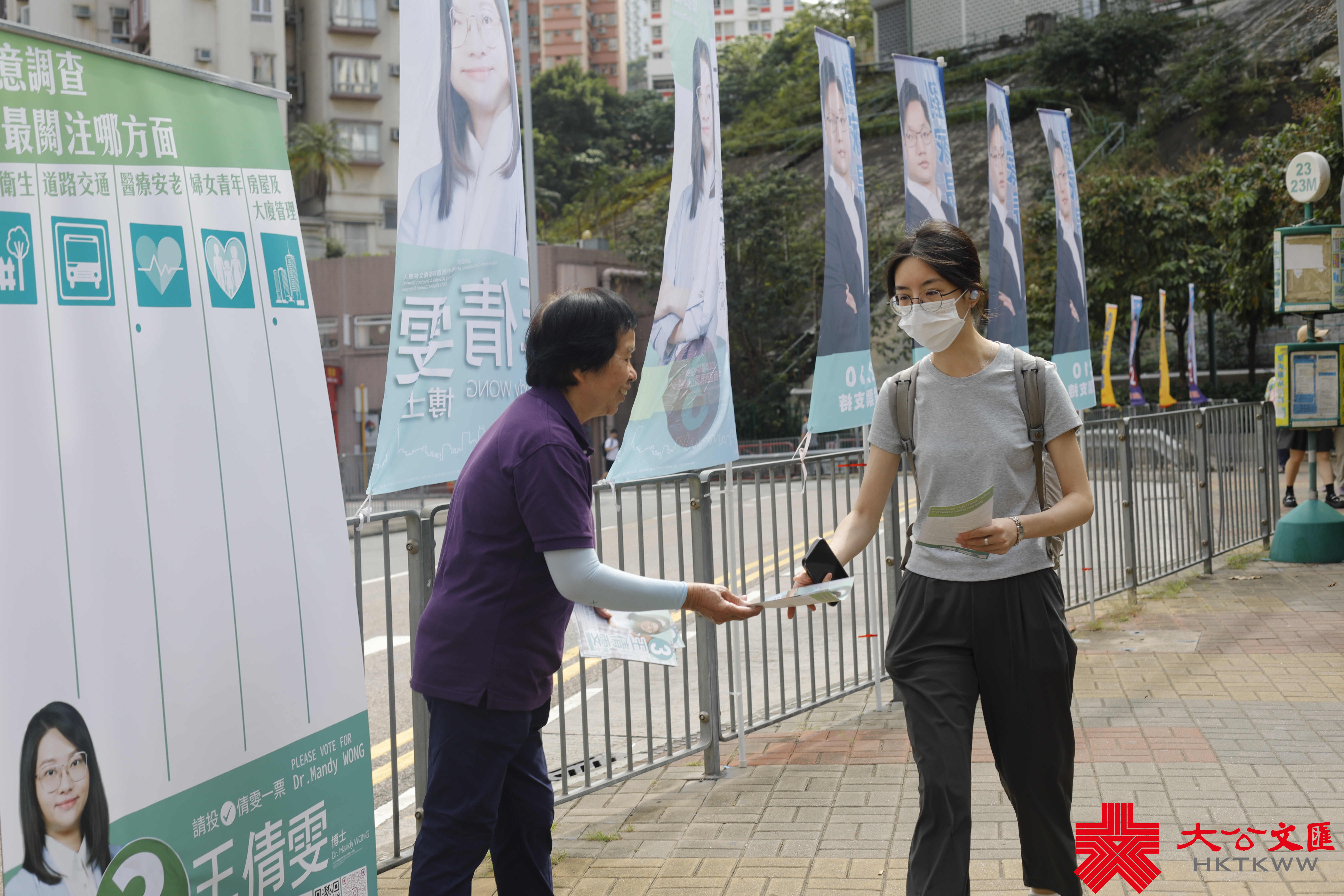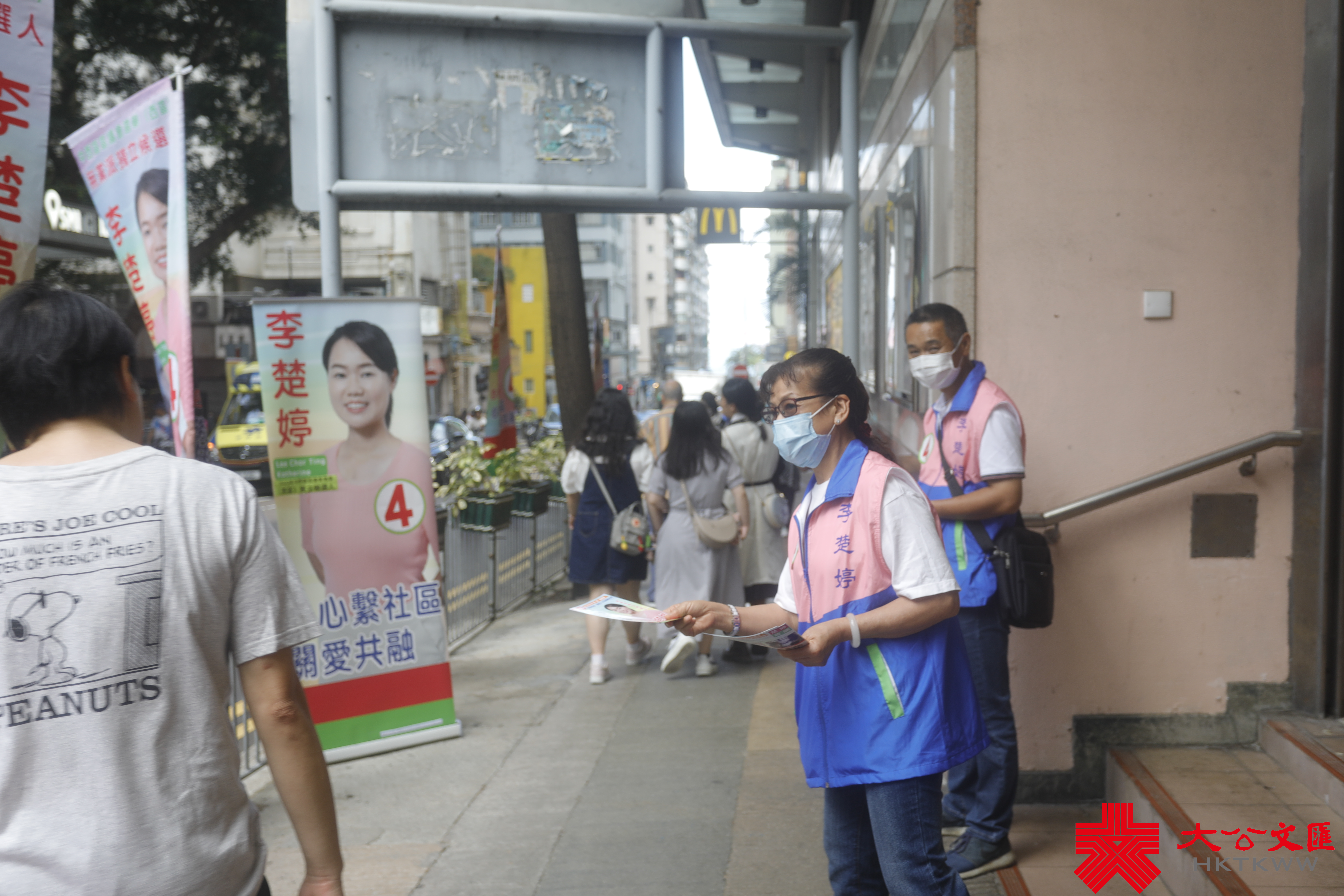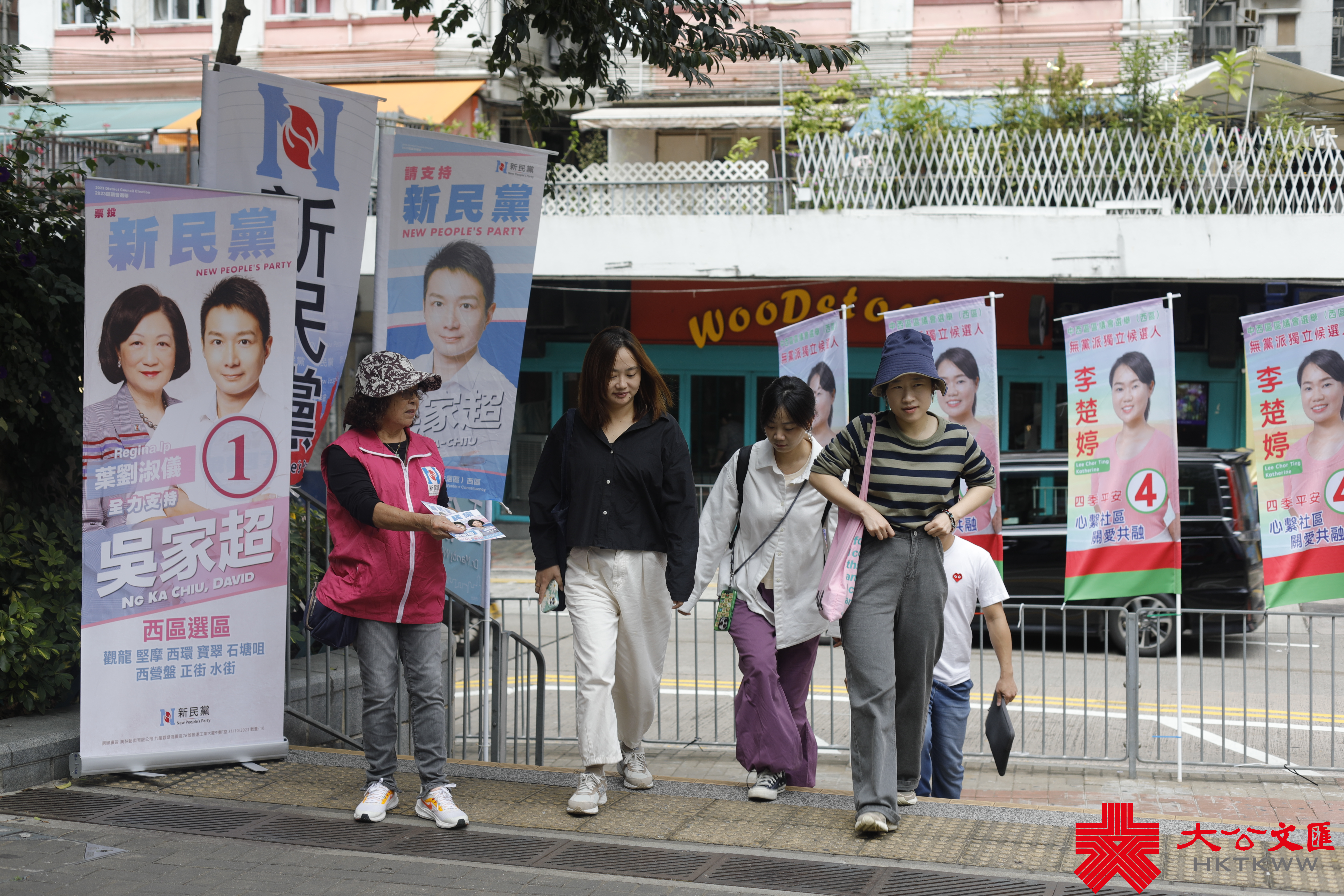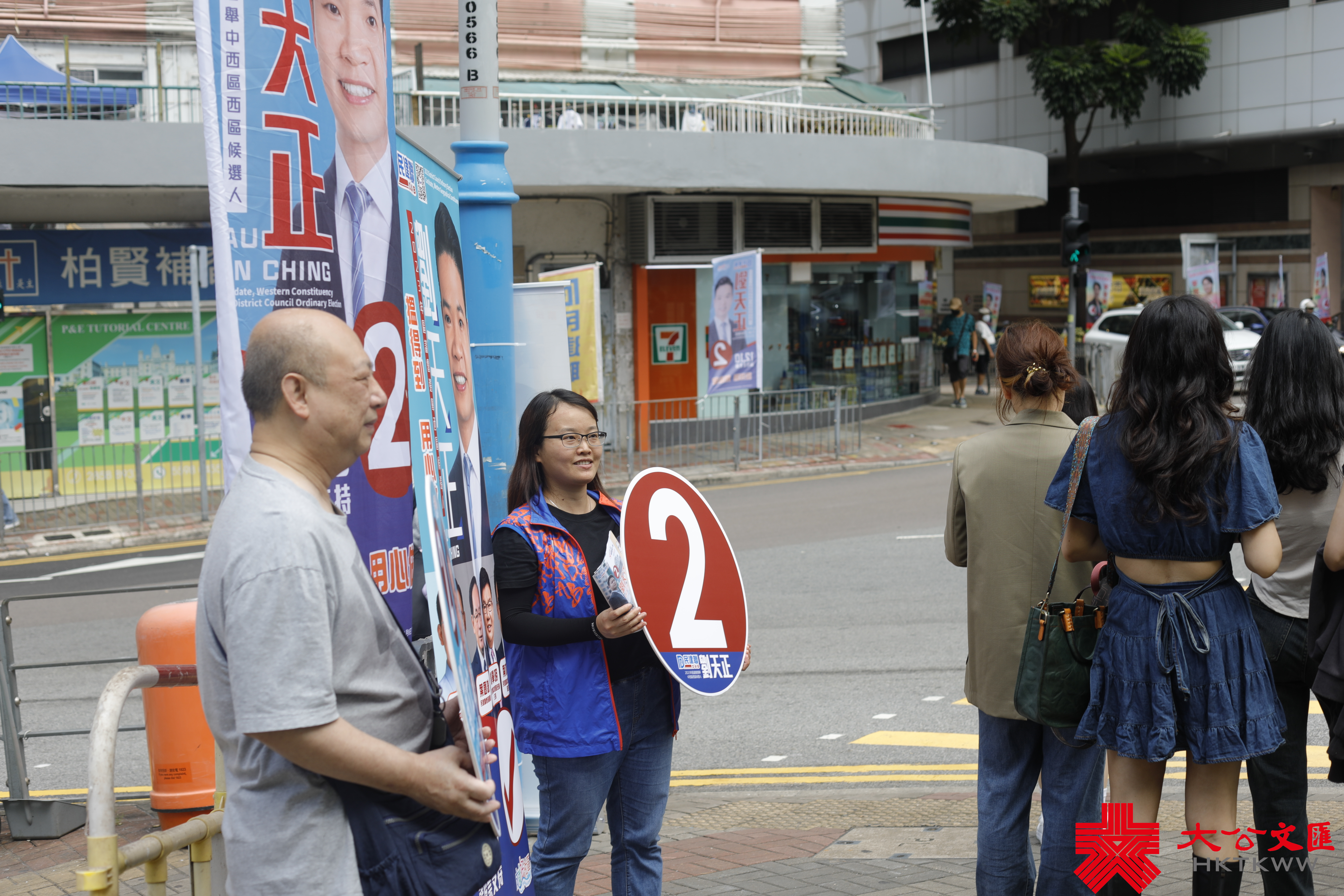 (大公文匯全媒體 記者 王俊傑)新一屆區議會選舉已進入白熱化階級,而星期日黃金時段的港鐵站出入口更加成為各大陣營的兵家必爭之地。大公文匯全媒體記者今日(12日)剛踏出西營盤港鐵站,就被五彩繽紛的「旗海」所吸引,各候選人的助選團隊連忙向周遭人群派發政綱單張,希望在有限的時間爭取市民認同。