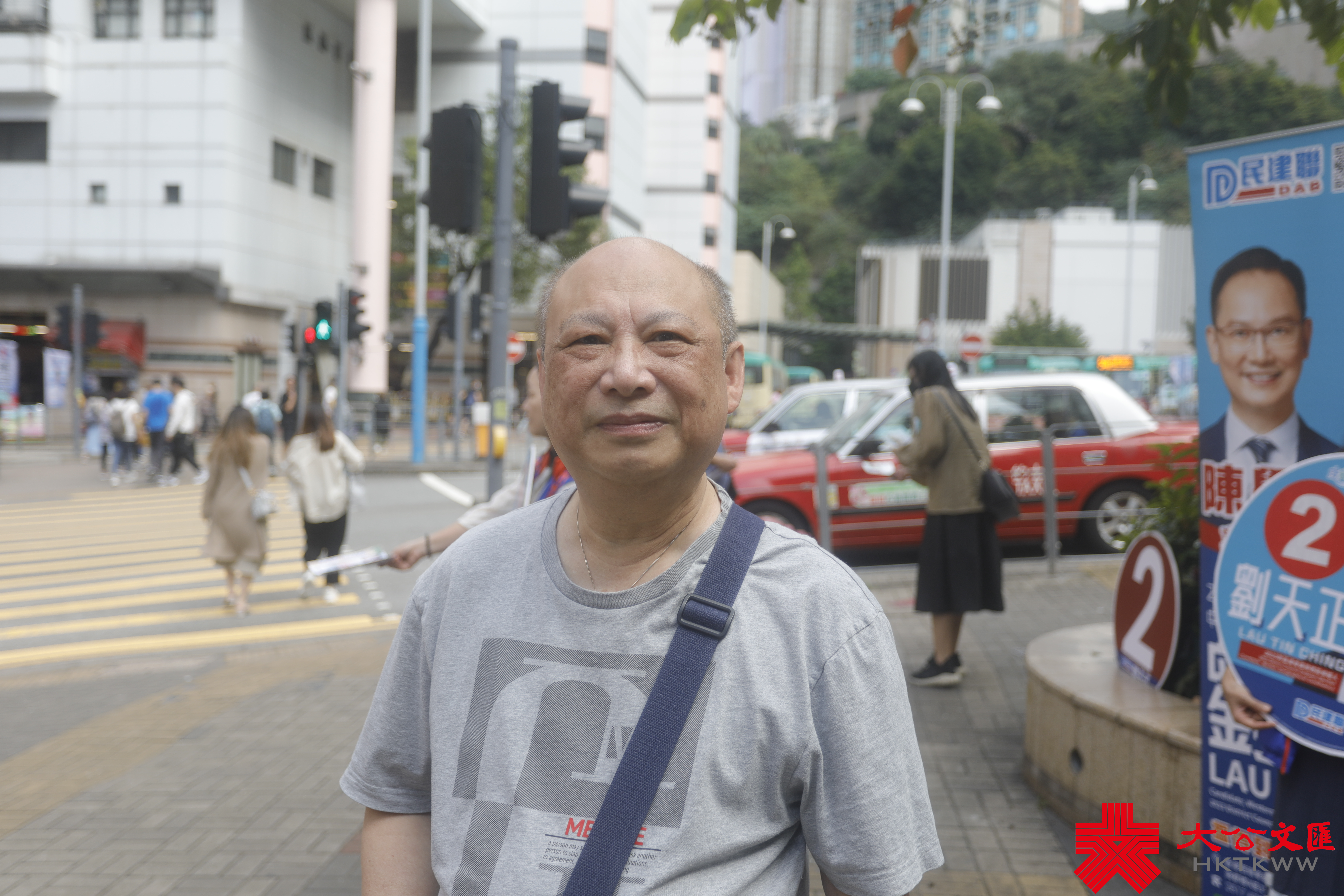 市民譚先生透露,自己從小在西區長大,是名有六十年資歷的「老街坊」。他認為,西區樓宇老化問題嚴重,近期多宗新聞報道舊樓石屎剝落,引起居民恐慌,希望候選人能有更多推動舊樓重建的政綱。