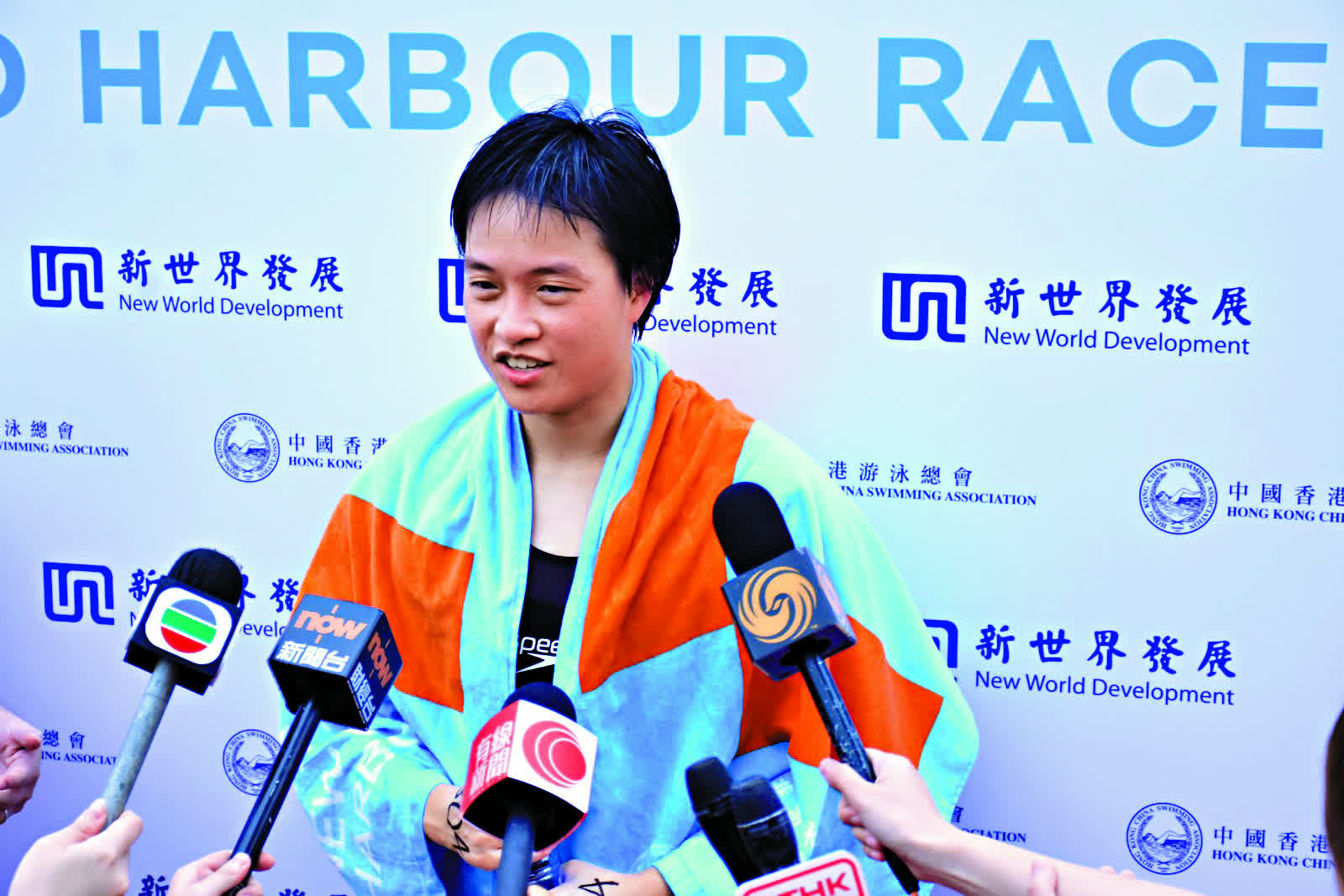 13歲的黃同學首次參加優悠組賽事,她表示,水流比想像中急,且逆水游泳非常辛苦。不過,她仍為自己完成人生首次維港泳而開心,表示來年會繼續參加。
