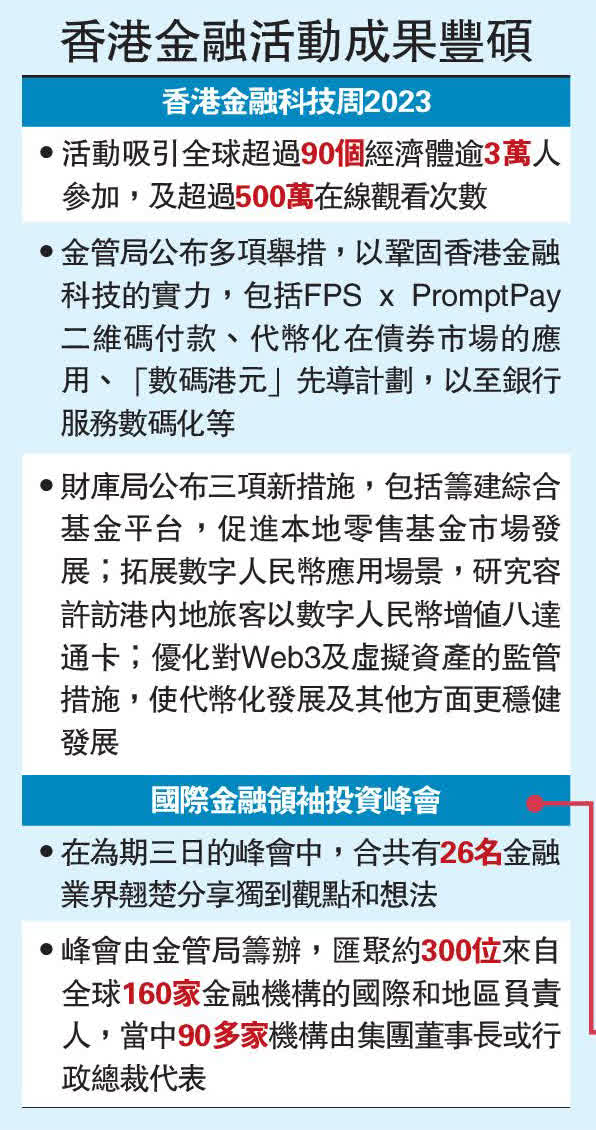 陳茂波透露,香港未來兩周將迎來國際結算銀行(BIS)高級別會議,下月初沙特阿拉伯的未來投資倡議研究所(FII)亦將在香港舉辦首次的「PRIORITY」亞洲峰會。這些會議都見證着「一國兩制」下的香港,正發揮着獨特的橋樑和平台作用。國際化是香港的優勢、更是香港的DNA。香港要全力發揮好這個優勢,不斷擴大國際朋友圈,既促進自身的進一步發展,也貢獻國家國內國外雙循環相互促進的高質量發展進程。