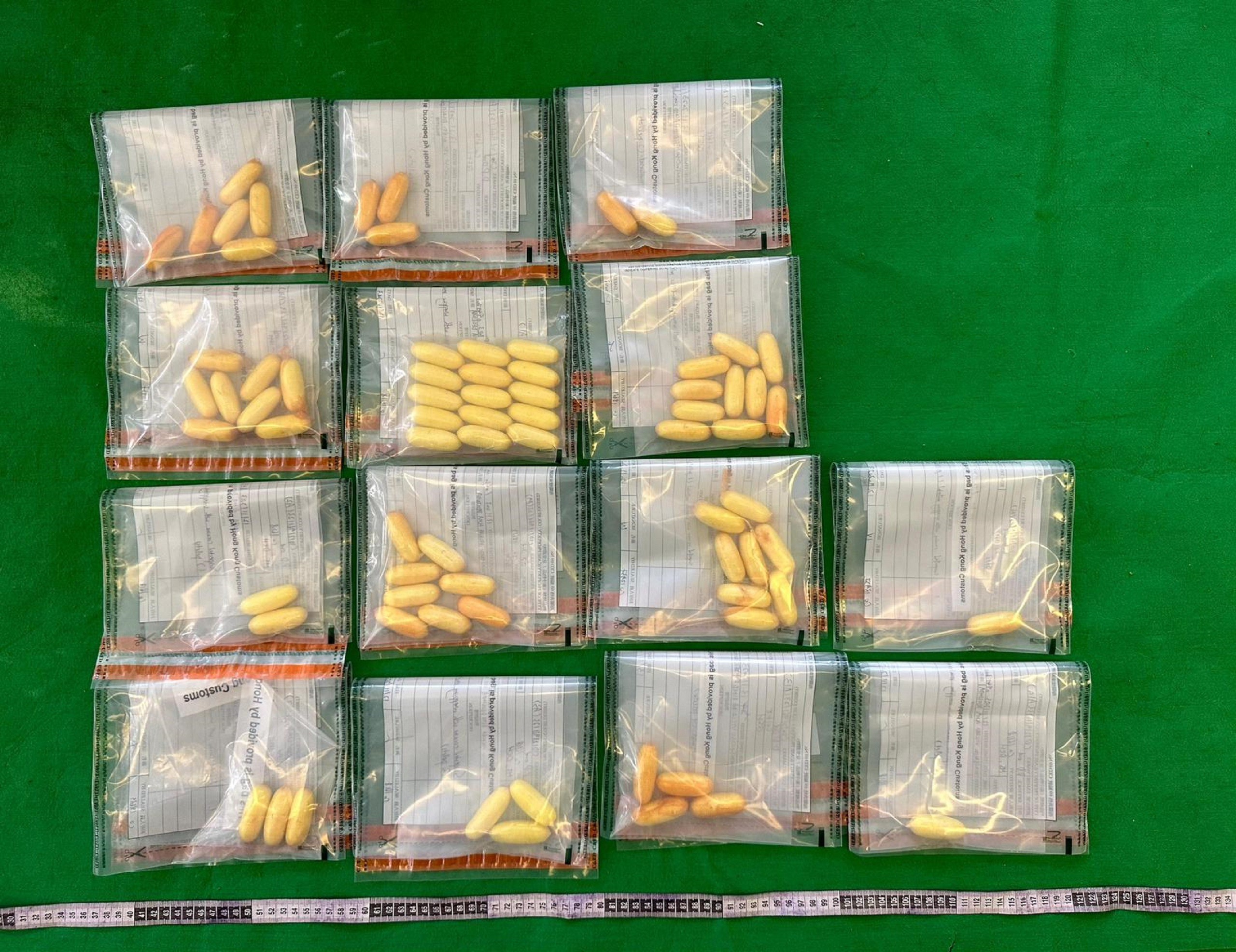 經檢查後,醫生確認該旅客體內藏有異物,海關人員隨即把她拘捕。截至今日(13日)下午1時,被捕人士已從體內排出74粒共重約890克的懷疑可卡因。