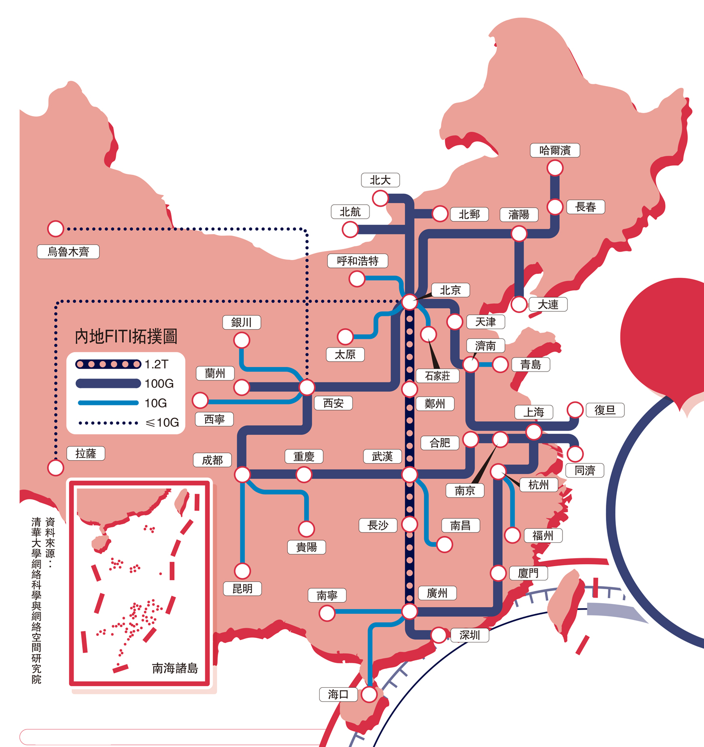 未來互聯網試驗設施(FITI)是清華大學承擔的國家重大科技基礎設施「未來網絡試驗設施」項目的重要組成部分,新開通的互聯網主幹通路是FITI的一項重大技術試驗成果。該通路自2023年7月31日試運行以來,運行平穩可靠,通過各項試驗測試,達到了設計指標。