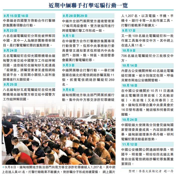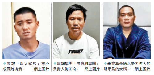 (香港文匯報 記者 趙一存 北京報道)中國公安機關12日公開懸賞通緝緬甸北部果敢自治區電騙犯罪集團重要頭目明學昌、明國平、明菊蘭和明珍珍。之後在當日凌晨網上廣泛傳播多條視頻,內容是果敢「四大家族」核心成員魏清濤、劉正琦以及畢會軍落網後公開懺悔,敦促家族交回園區中國人。據稱,三人是上月在內地被捕。13日,有內地權威人士向香港文匯報透露,上述消息屬實,三名頭目當前正接受內地警方進一步調查。13日晚,內地有媒體開始起底「四大家族」、明學昌家族及其頭目。