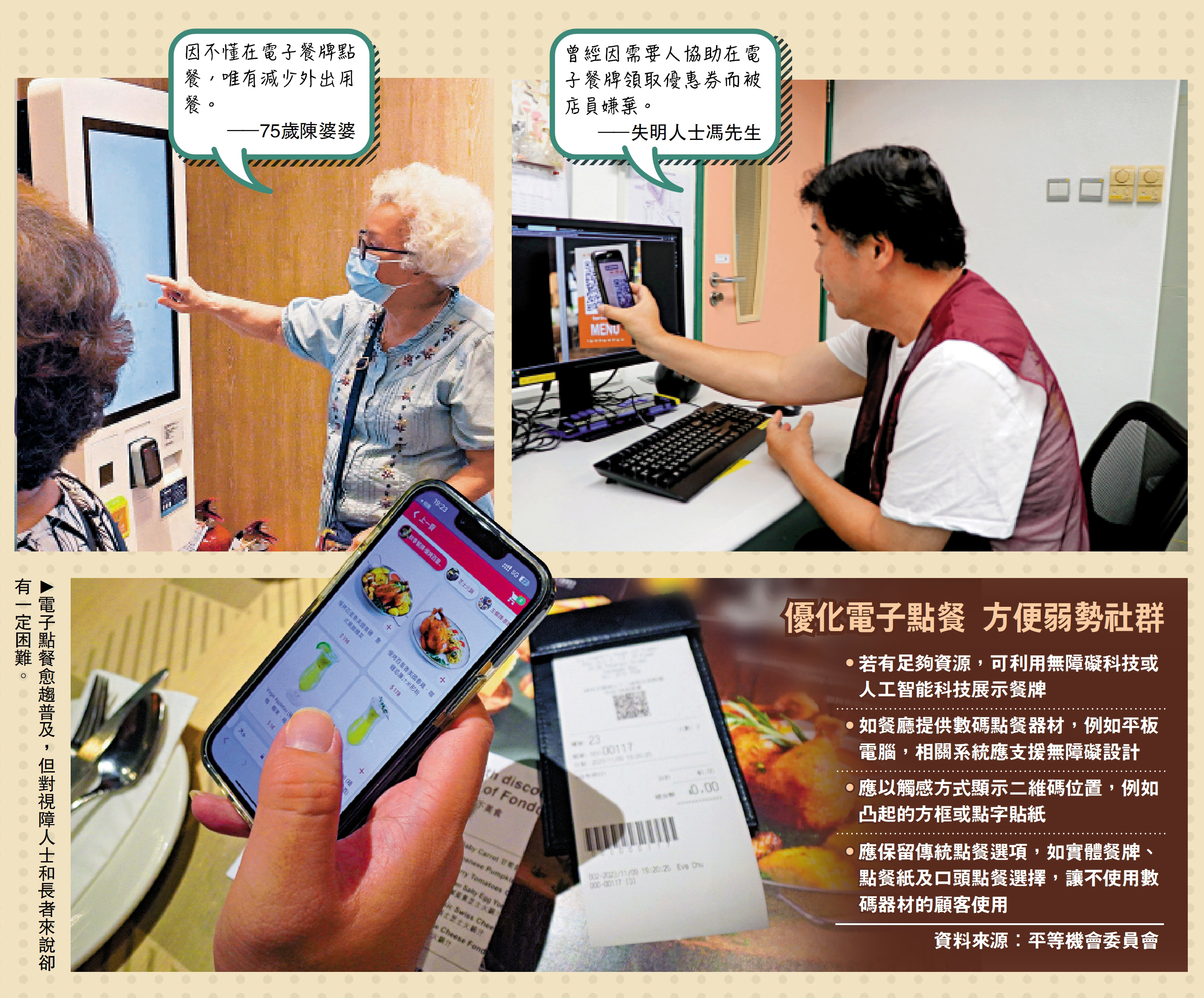 (大公報記者 伍軒沛、林少權)電子點餐在餐飲業愈趨普及,但對視障人士和長者來說卻是個難題!