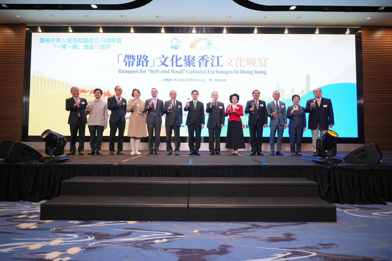 大公文匯全媒體報道,值「一帶一路」倡議提出十周年之際,為慶祝「一帶一路」倡議十年來成果豐碩惠及全球,堅定走高質量發展之路,外交部駐港特派員公署和「一帶一路」總商會於2023年11月13日晚假香港海洋公園萬豪酒店,共同舉辦「『帶路』文化聚香江」文化晚宴,聯動「一帶一路」青商,打造雙向共贏通道,激發香港超級聯絡人平台功能,共同推動「一帶一路」高質量發展。