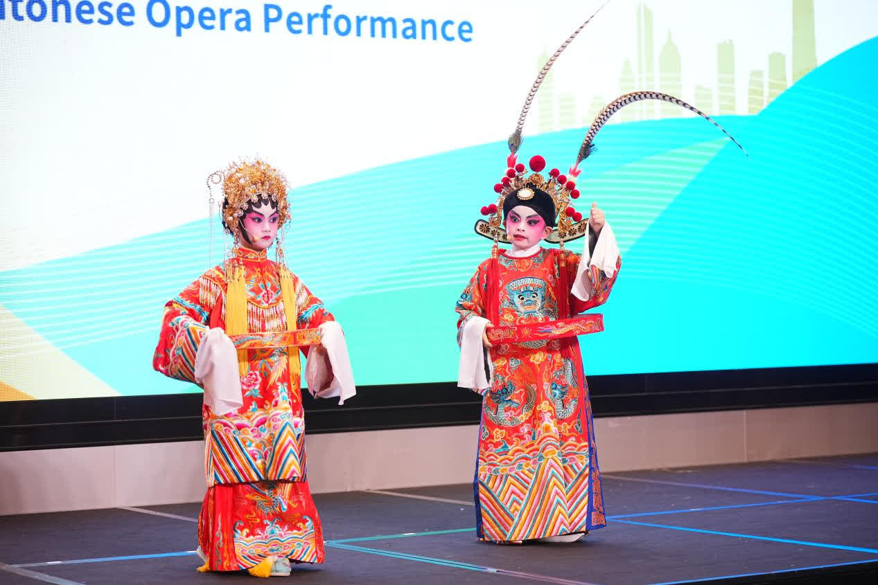 「『帶路』文化聚香江」文化晚宴由《佳餚為媒賞「帶路」》和《舞影樂韻遊「帶路」》兩部分組成,以精品、傳承、融通為主旨,主辦方精心設計了一系列具有「一帶一路」國家特色的美食佳餚,同時更安排了香港兒童粵劇、印尼民族歌舞、中東烏德琴演奏、菲律賓傳統舞蹈等的文藝表演節目,為現場賓客帶來了感受「帶路」國家文旅特色和體驗香港多種文明交融的難得機會。整場晚宴,折射出「一帶一路」倡議十周年,不同國家文化,相互相融、文明互鑒,「民心相通」的真摯情誼。