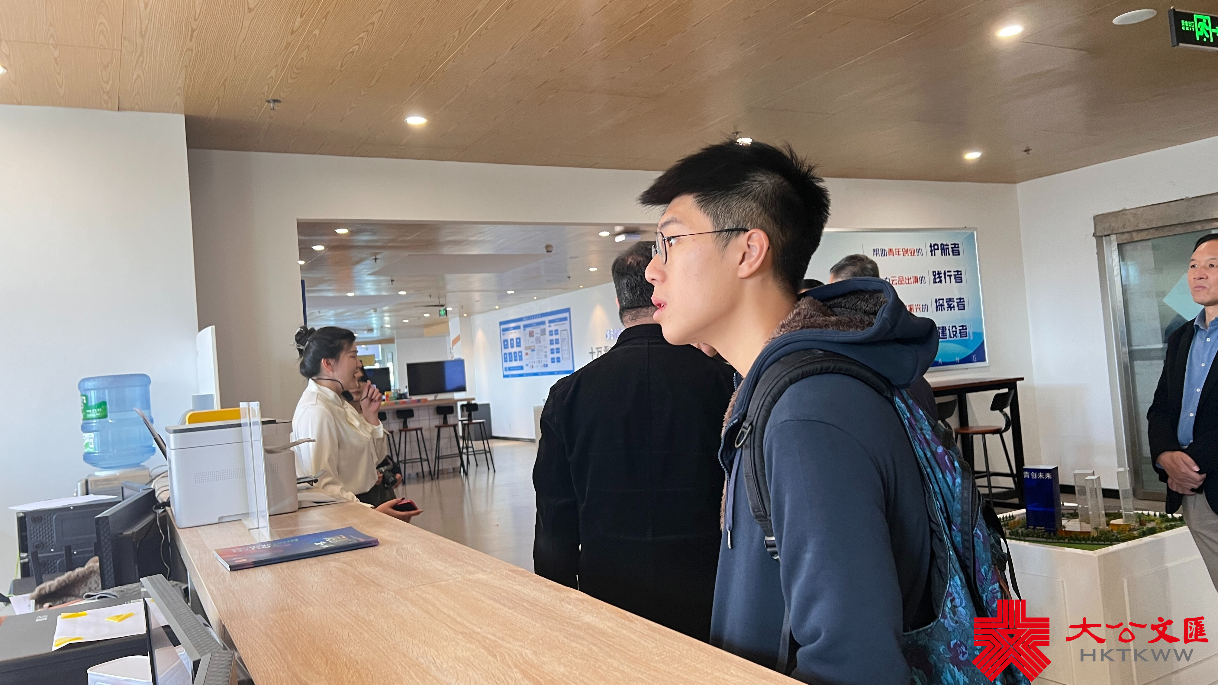 香港中文大學同學譚健聰在青創基地參觀時看得特別認真,他說,他了解到青創中心為創業者提供一整套的服務,他覺得特別好,「假如我是一個創業者,我帶着想法和思路來到這裏,可以得到指導幫助,然後進行孵化,直到成為產品進入市場,這真的非常棒」。