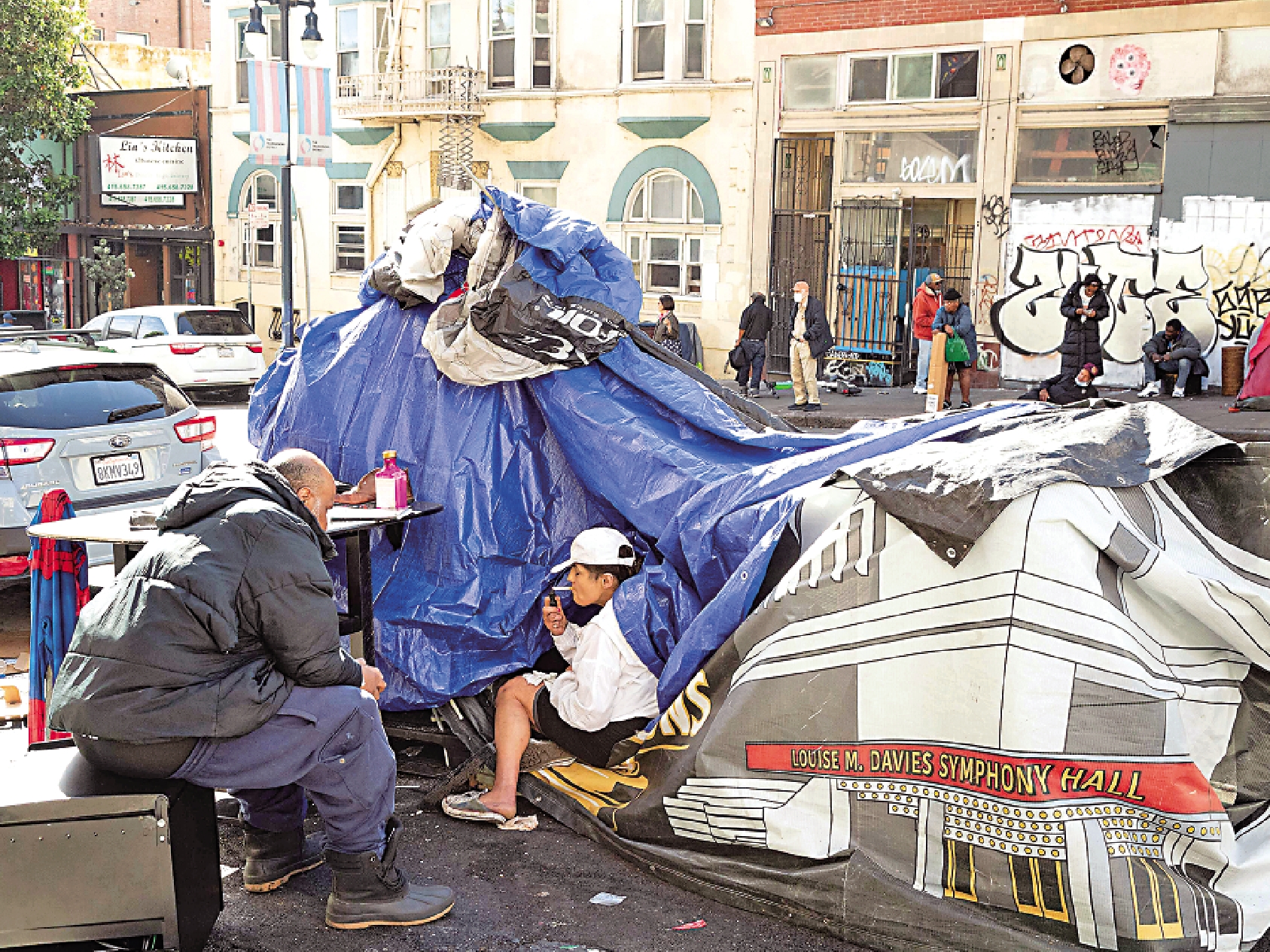 最令舊金山當局頭疼的當屬露宿者問題。舊金山無家可歸人口超過7700人,此次APEC峰會主會場莫斯康中心附近亦有露宿者營地。很多露宿者同時也是癮君子,他們的聚集地毒品犯罪猖獗。《紐時》稱,舊金山警方近日強制莫斯康中心和美國總統拜登下榻酒店附近的露宿者搬走。距離莫斯康中心不到一英里的佩洛西聯邦大樓原本被毒品市場和露宿者營地包圍,但現在大樓周圍乾乾淨淨,並安裝了防護圍欄。