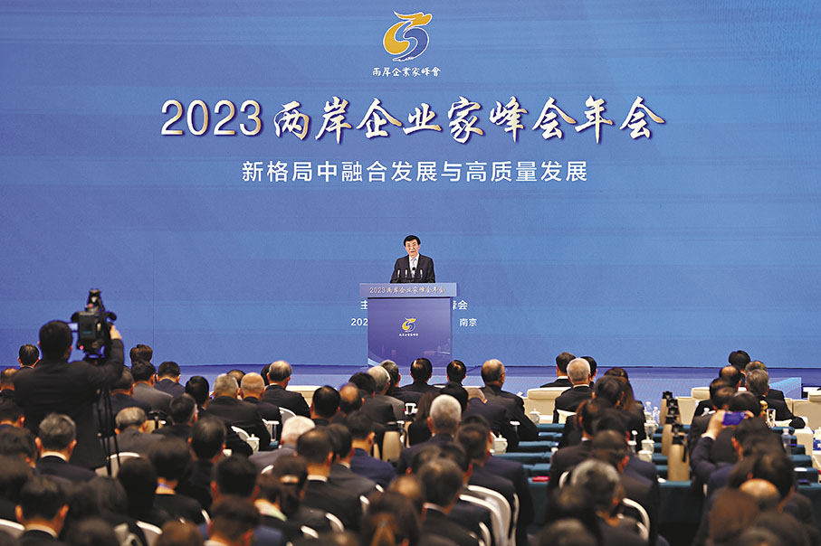 王滬寧表示,習近平總書記的賀信,闡明了兩岸經濟同屬中華民族經濟、兩岸同胞是命運共同體的共識和道理,宣示了致力於促進兩岸經濟交流合作、深化兩岸各領域融合發展、助力台胞台企融入新發展格局、實現高質量發展的原則立場,充分體現了對兩岸企業界、工商界和廣大台胞台企的關心關懷。我們要以習近平總書記賀信精神為指引,把兩岸企業家峰會辦得越來越好。
