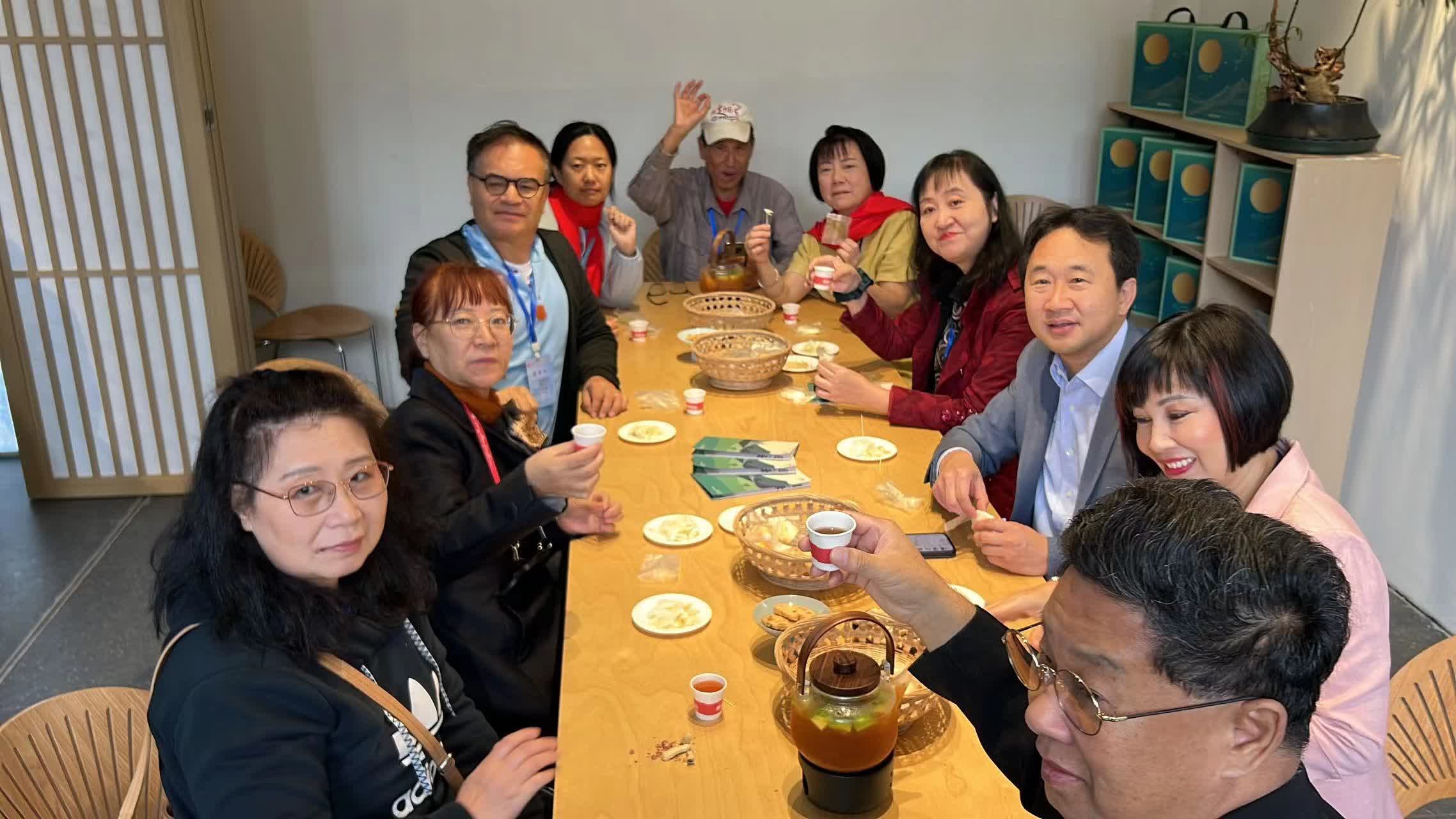 位於清遠客廳裏的「言葉茶敘」是言葉茶飲品牌專門為清遠客廳定製的茶敘空間,「言葉」是清遠本土成長起來的年輕茶飲品牌,在清遠有多家連鎖店,深受年輕人喜歡。海外華媒代表們在現場品嘗了一系列英德紅茶的手沖茶系列,還吃到了陳皮花生、腌竹筍等當地特色小吃。