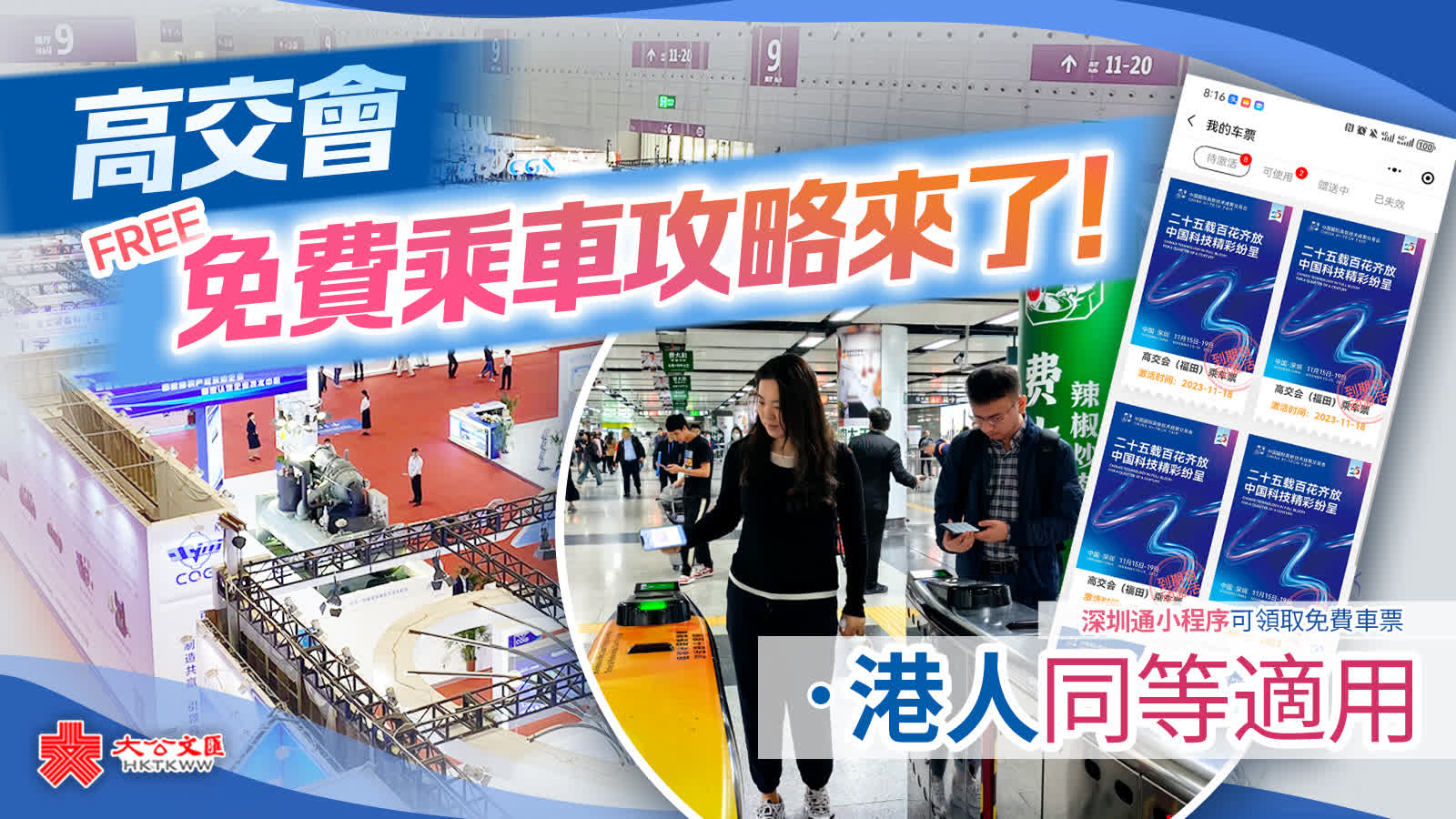 (大公文匯網 記者 郭若溪)11月15日至19日,第二十五屆中國國際高新技術成果交易會在深圳舉辦,展會吸引了不少港人港企參加,前往觀展有免費電子乘車票。參觀人員使用展會電子乘車票乘坐指定公交線路或抵離指定地鐵站點,可享受免費乘車一次。每天2張,其中福田展區最多10張,寶安展區最多8張。