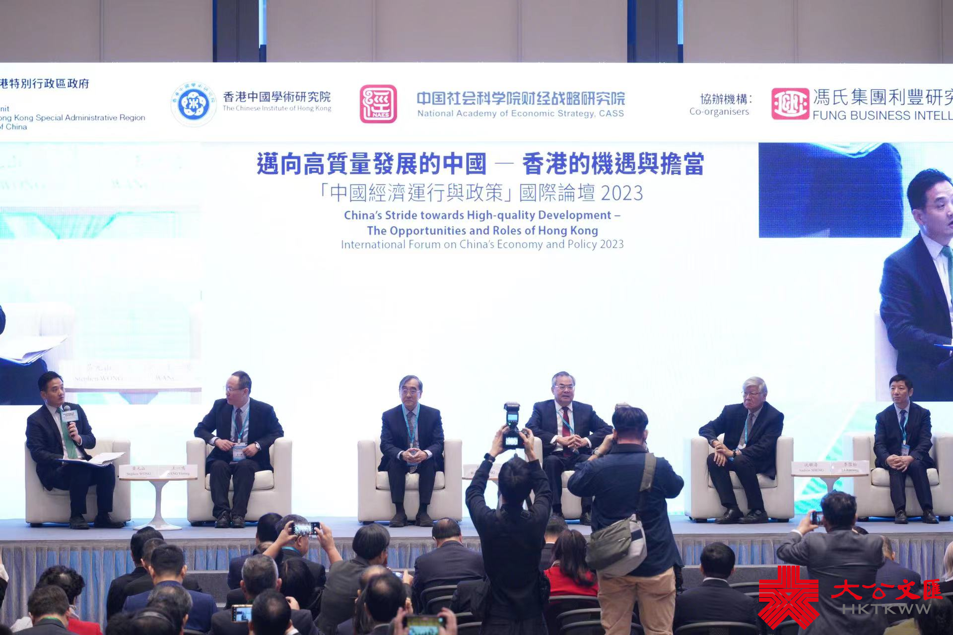 大公文匯全媒體報道,今日(11月15日),邁向高質量發展的中國——香港的機遇與擔當「中國經濟運行與政策」國際論壇2023在特區政府總部舉行。論壇匯聚內地、海外和本港20多位專家學者、商界領袖和政府官員作演講,超過400人出席,深入探討在國家持續邁向高質量發展的趨勢下香港未來的機遇和應予擔當的角色,並為國家和香港的經濟發展建言獻策。