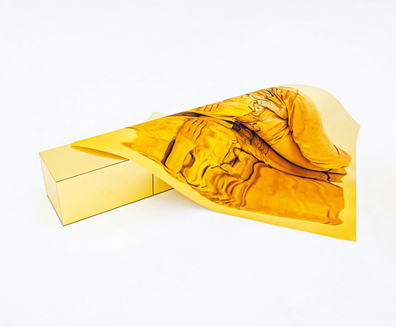 譚雪介紹道,數年前她便邀請Maria來港,當時藝術家剛在維也納Secession展覽館做完「Maria Hassabi: HERE」個展,便萌發了使用「金」作為新作的元素。後來因為疫情原因計劃擱置,藝術家反而有了很長的時間去思索,等到今年終於來港,作品發展成為一白一金兩個對比強烈的房間。