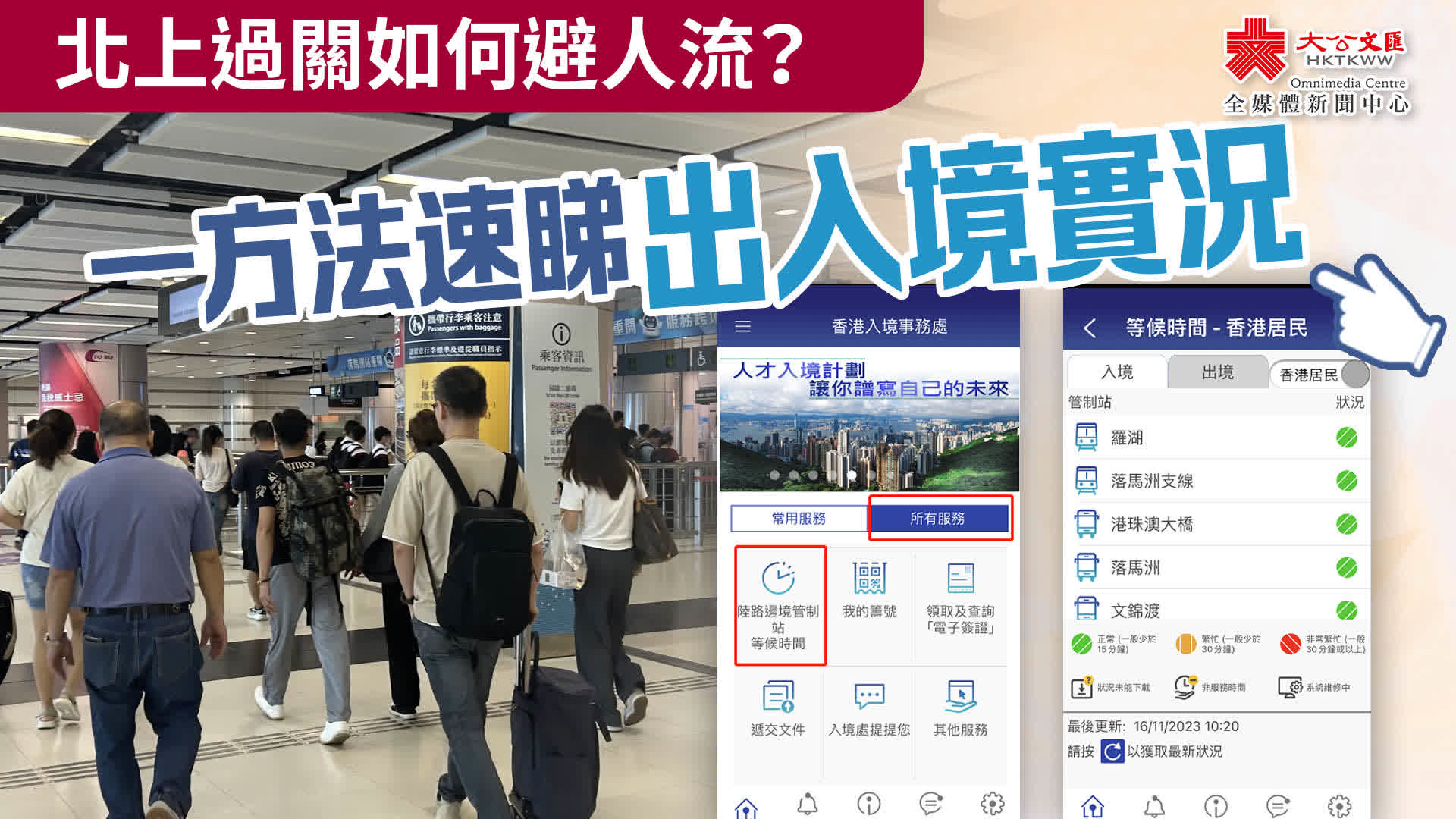 大公文匯全媒體報道,不少港人周末會北上吃喝玩樂,如何能夠快速通關,免去排隊煩惱呢?「香港入境事務處」App為用戶提供香港出入境口岸實時狀況,只要在App首頁選擇「陸路邊境管制站等候時間」功能,即可瀏覽全港出入境口岸的實時人流狀況。