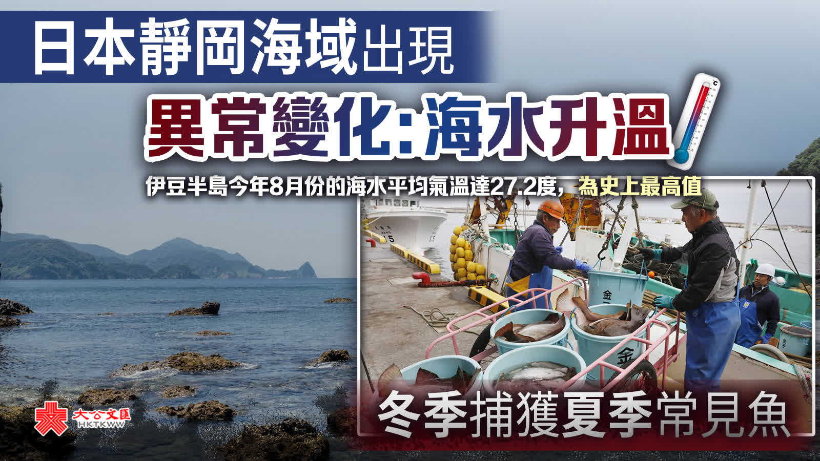 據海外網援引日本電視台「靜岡放送」16日報道,日本靜岡縣周邊海域近期出現一系列異常變化,如漁民在伊豆半島海域捕獲到本該在沖繩海域棲息的魚、靜岡縣熱海市11月的市場卻擺着夏季常見的魚類等。