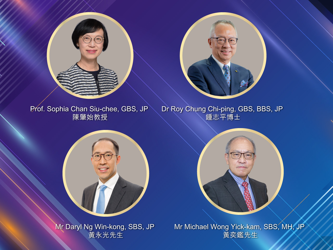 將獲頒榮譽博士學位的四位人士為:陳肇始(榮譽社會科學博士)、鍾志平(榮譽工商管理學博士)、黃永光(榮譽工商管理學博士)及黃奕鑑(榮譽社會科學博士)。