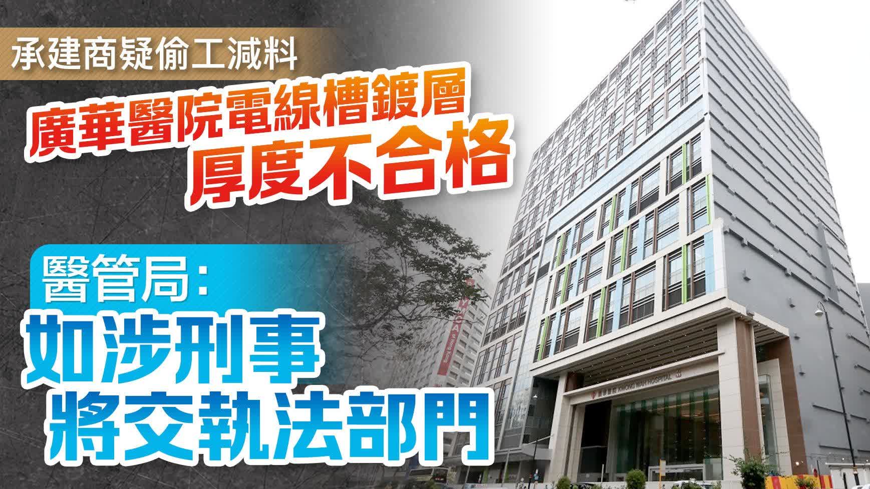 大公文匯全媒體報道,斥資逾100億元重建、今年落成的廣華醫院新大樓,被揭發電線槽涉嫌偷工減料。醫管局早前委託獨立專家檢測廣華醫院電線槽鍍層厚度,局方今日(16日)證實,大樓電線槽鍍層的厚度少於20微米(μm)的標準,重量亦未達275g/m²的相關標準,獨立專家確認兩者均不合規格,未達工程合約訂明的標準。醫管局已按照結果及合約條款向承建商採取跟進行動,同時局亦要求承建商詳細調查及解釋違規原因,若發現涉及刑事成分,會轉交執法部門跟進調查。