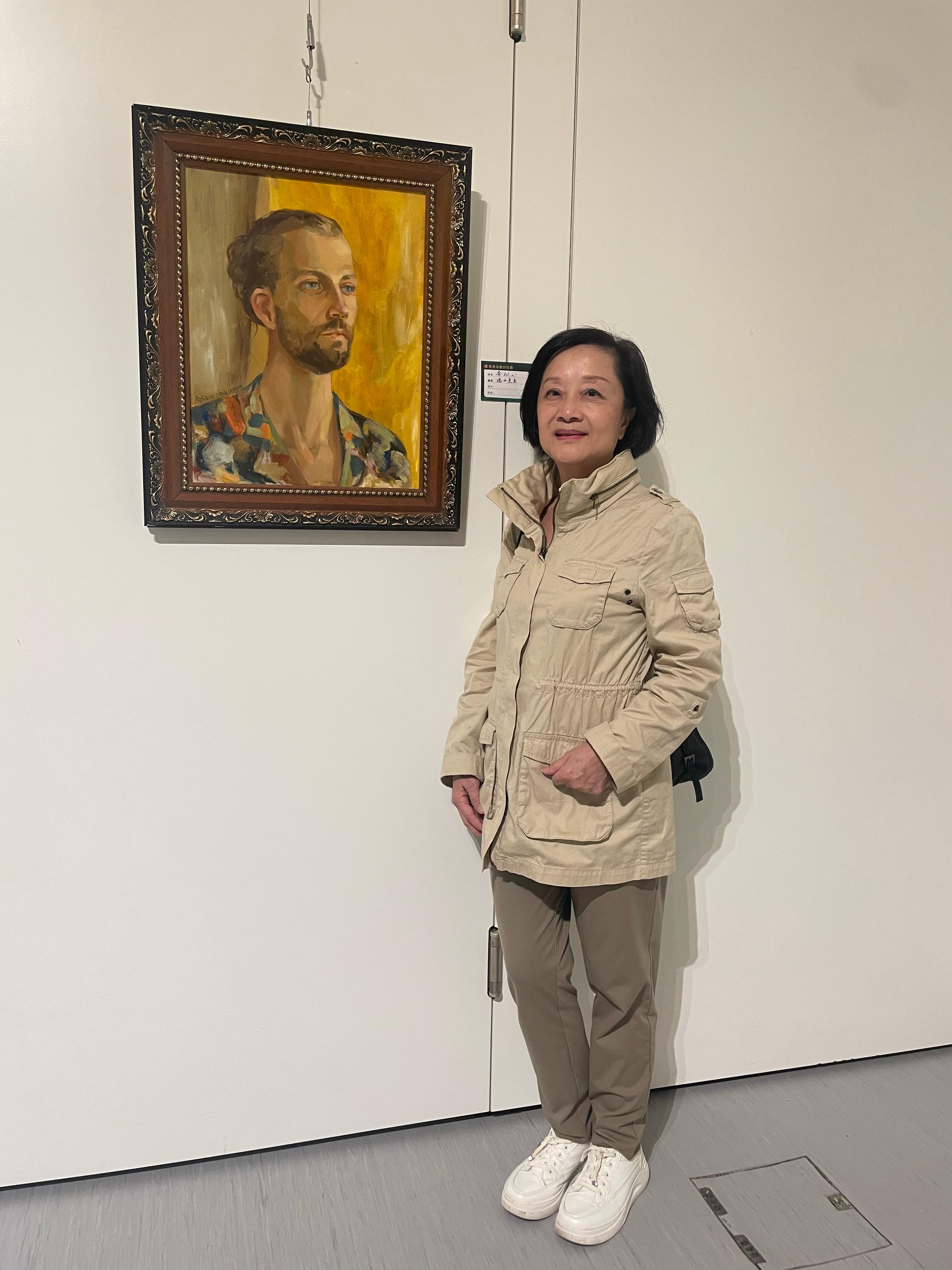 香港畫家余似心是次帶來三件油畫作品,其中包括兩幅人物肖像《瑞士先生》《一行禪師》,余似心說自己很喜歡畫人物肖像畫,因為人物肖像中有很多的感情。