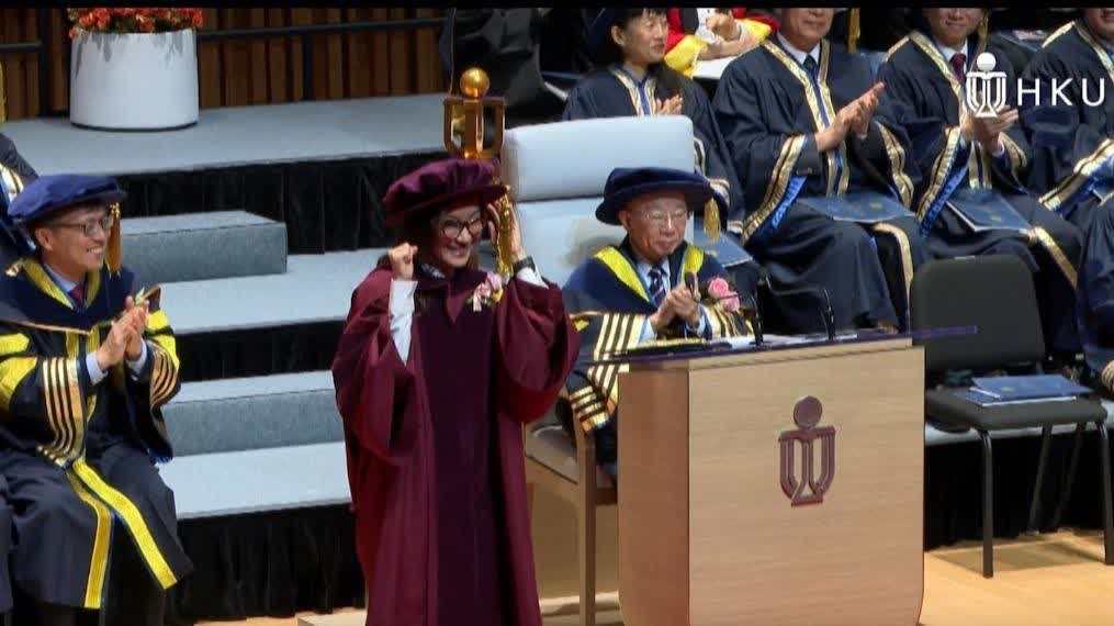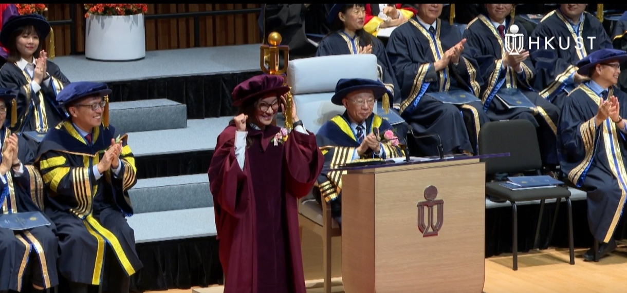 (大公文匯全媒體 特約記者 陳惠芳)奧斯卡影后楊紫瓊獲香港科技大學頒授人文學榮譽博士學位,她今日(17日)出席頒授典禮。楊紫瓊表示,能夠成為博士是她從小到大的一個夢想,對此感到十分開心。她還說:「特別因為喺香港呢度攞先,因為你知香港is my home(香港是我的家)。」